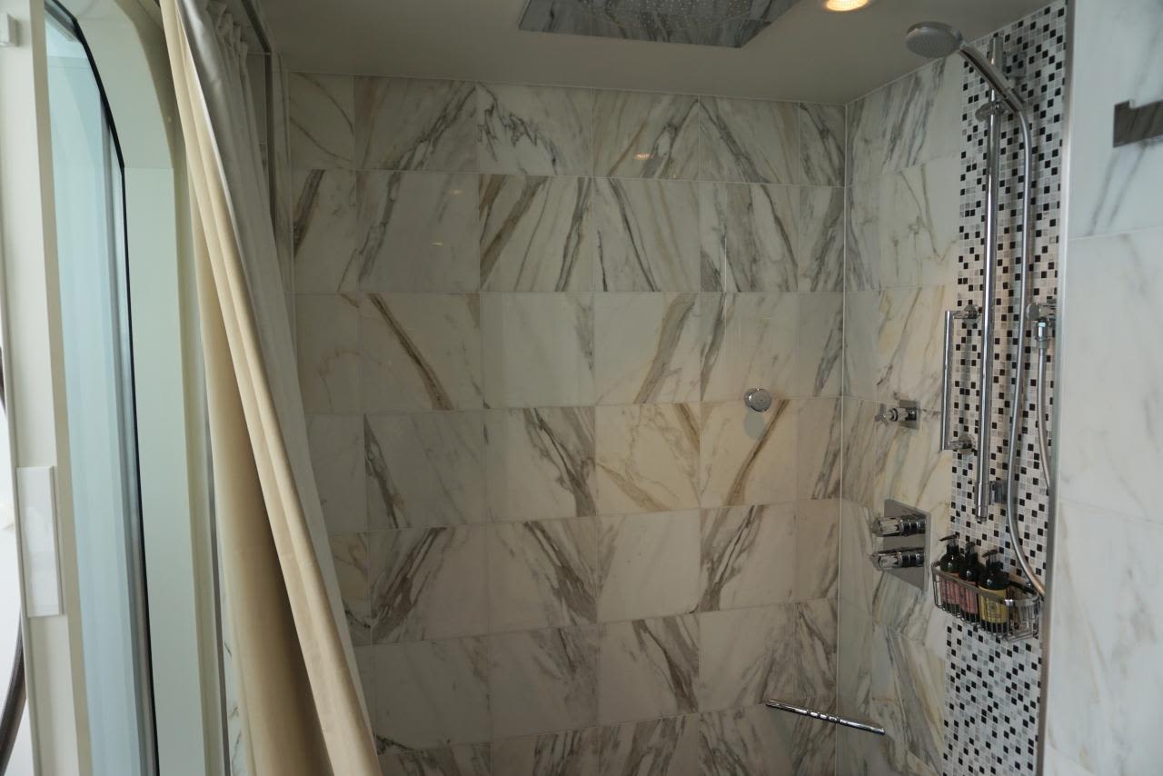 広いけどバスタブまでは距離があるから大理石の床で滑らないよう要注意!