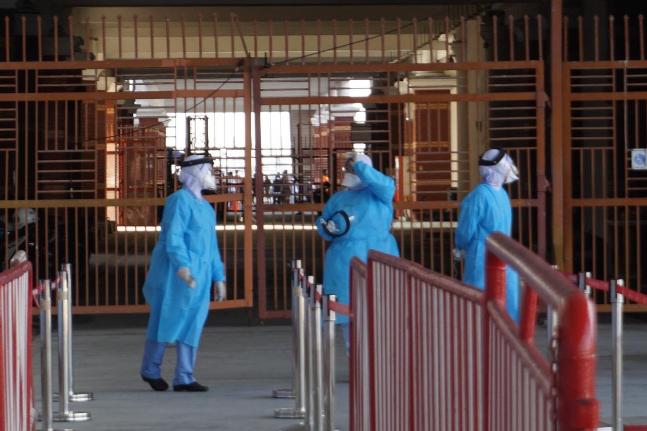 ここでも入国の時に非接触型体温計を使っておでこで検温します。