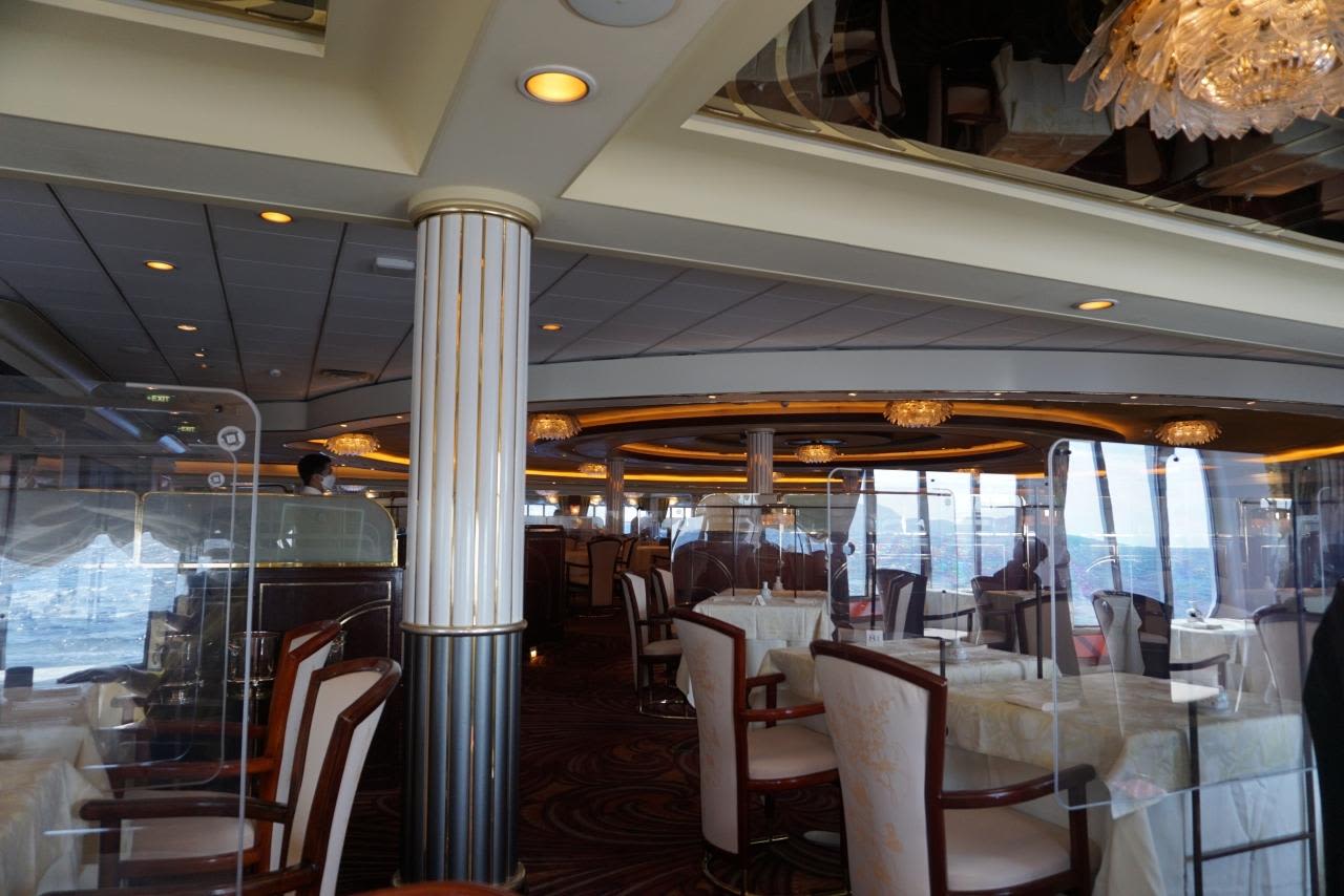 気合の入ったフォーマルでももちろん構わないけど、キレイ目ファッションで男性はジャケット必須(ネクタイは必須ではないけど推奨)というカジュアル船では見られないドレスコードです。