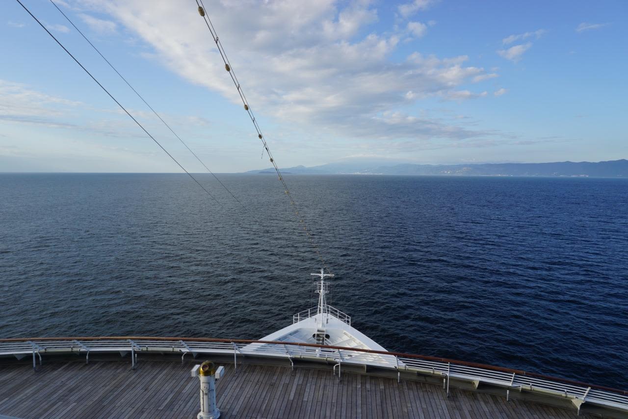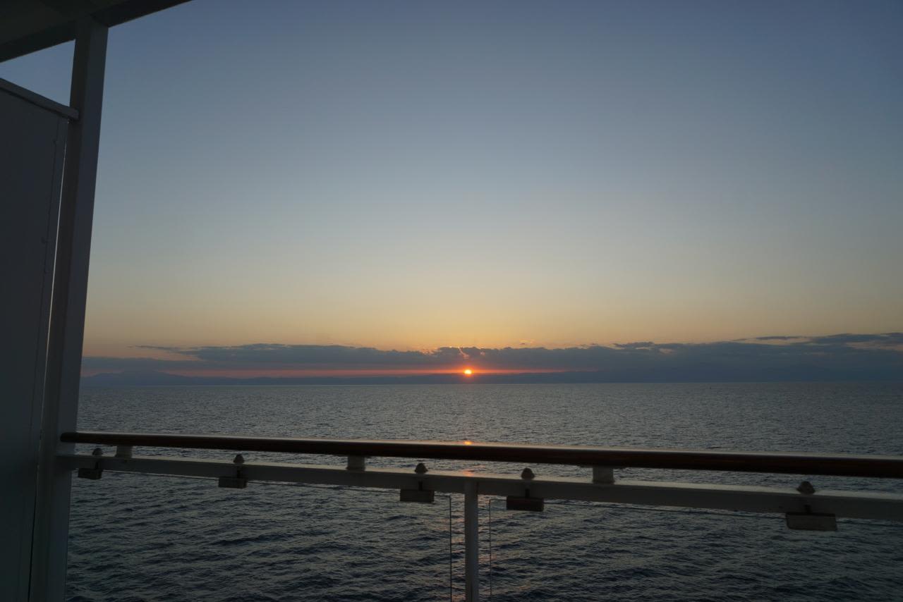 妙に早く目が覚め、バルコニーでボーっと海を眺め「わークルーズしてるーーーー」と実感。