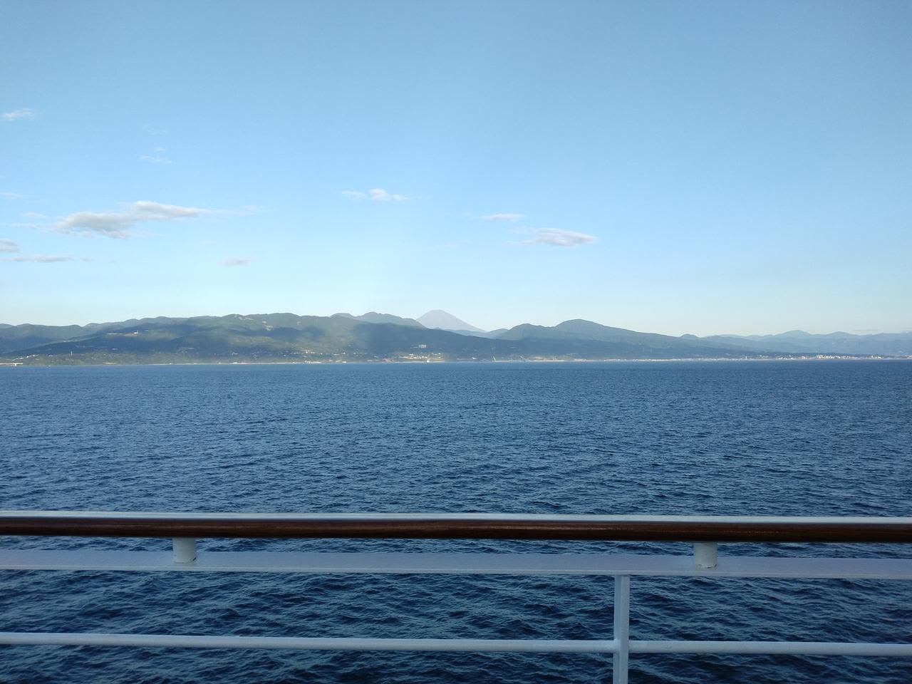 何と、女性用のお風呂側は富士山を真正面に臨むポジションで停泊中。(写真は入浴後デッキから)