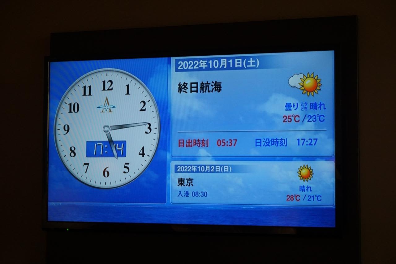 キャビンのテレビでは情報チャンネルもあったりします。
