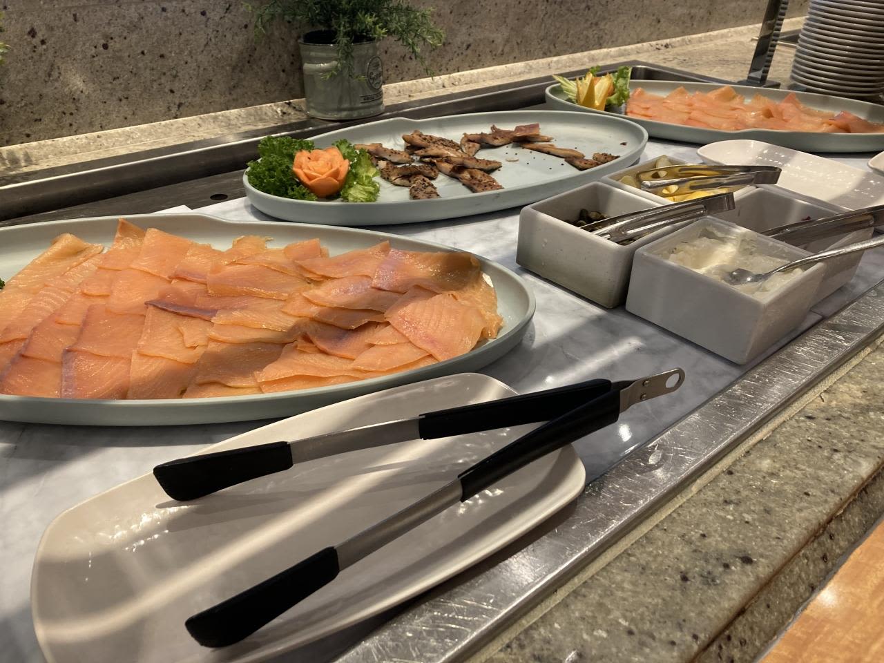 朝食の定番、スモークサーモンやスモークハーリングなども揃ってます。