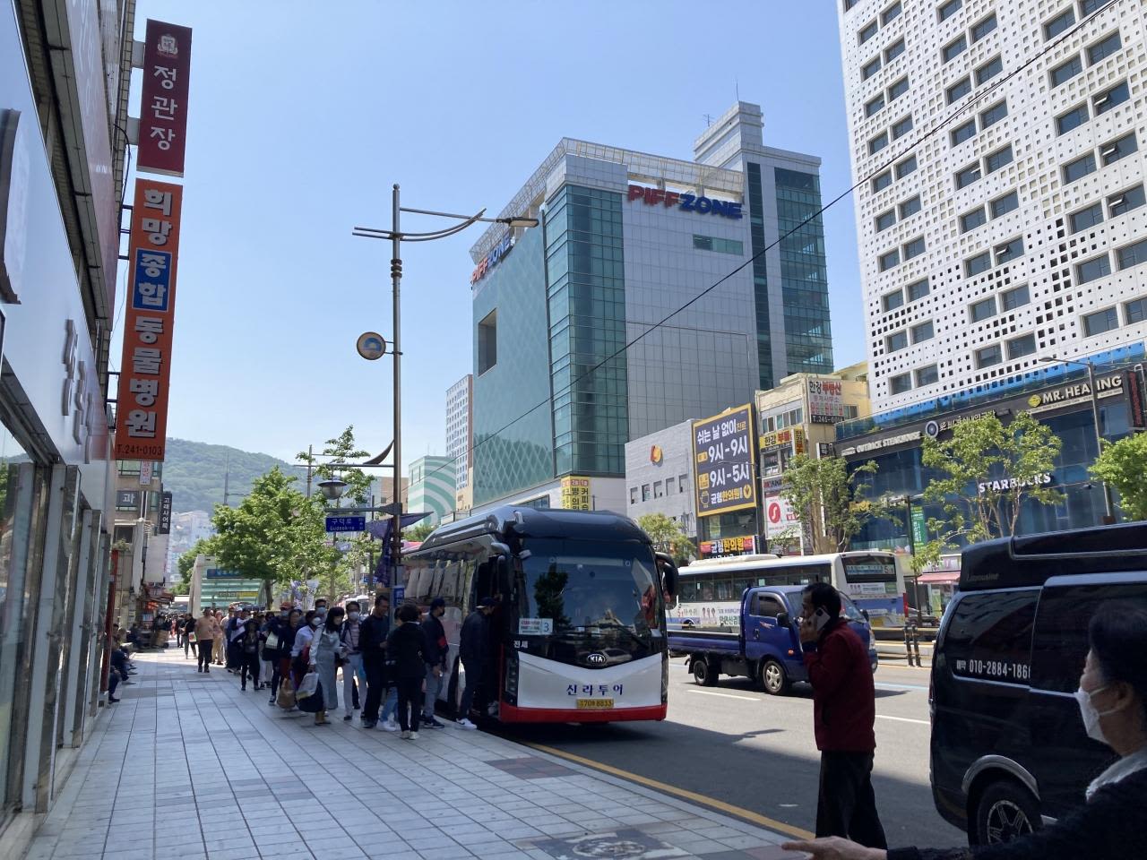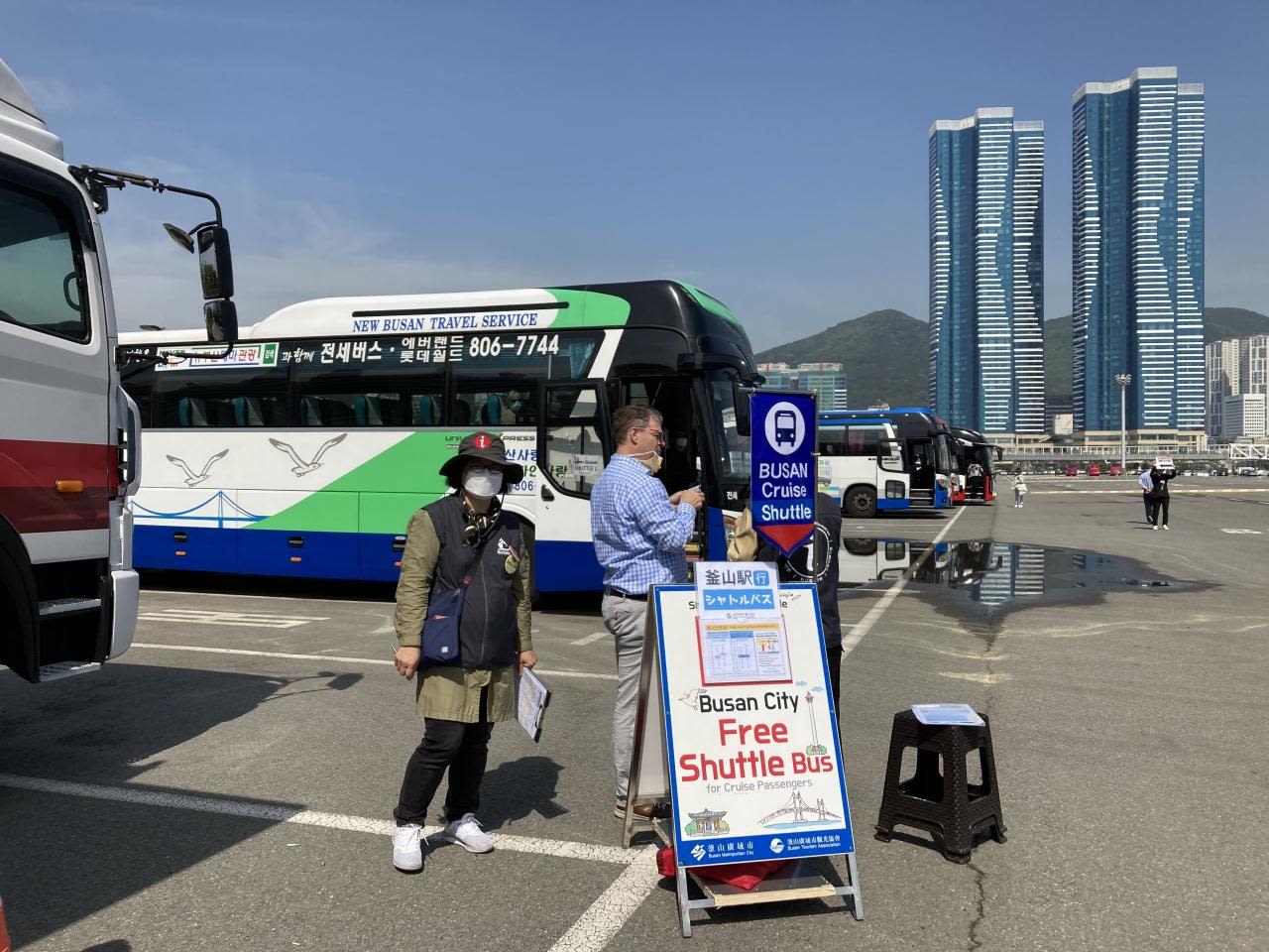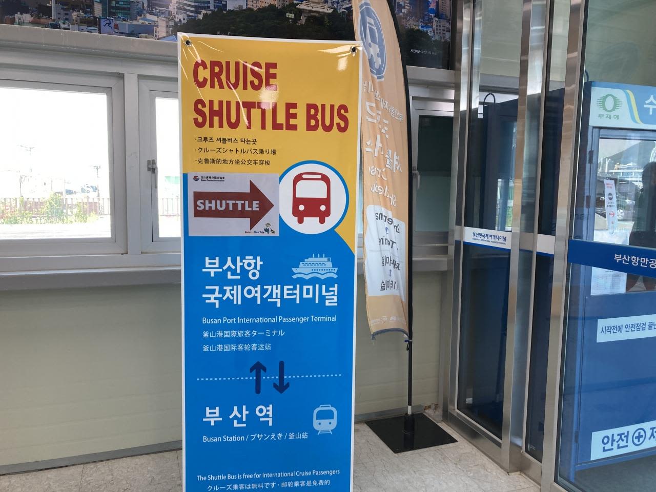 釜山駅、チャガルチ市場(スタンフォードホテル前)、ロッテ免税店までの無料シャトルバスが出ていました。