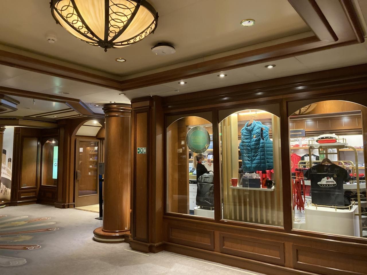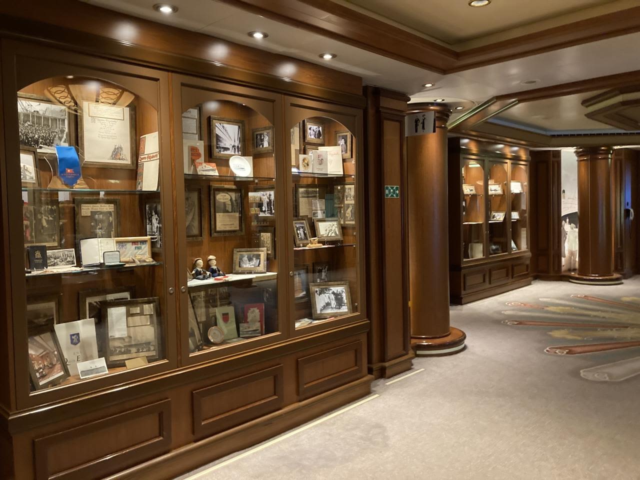キュナードやクイーンエリザベスにちなんだものが飾られているエリアはショップの目の前です。
