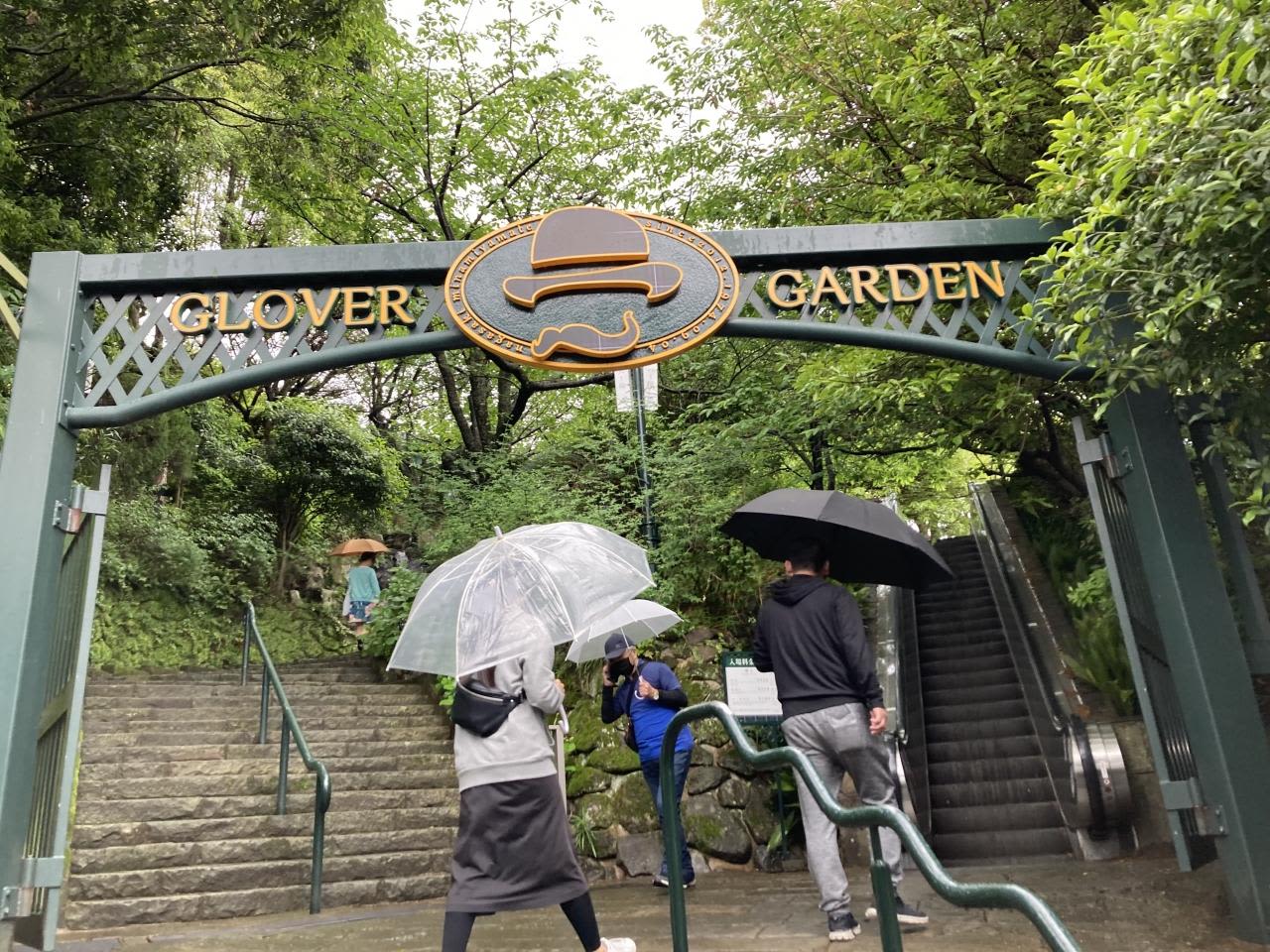 あいにくの雨だったけど、午前中は小雨の予報だったのでグラバー園を散策。