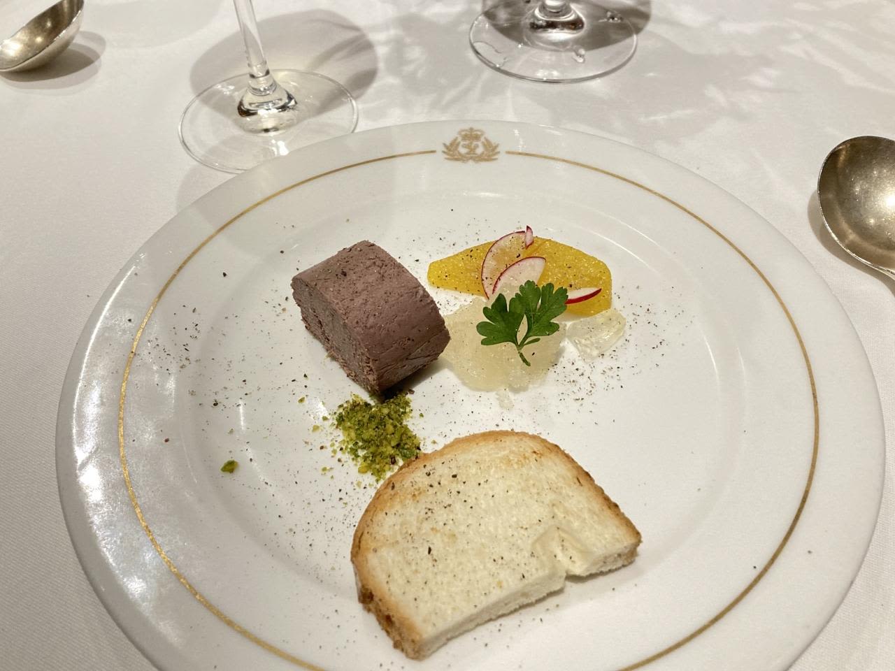前菜は鳥レバーパテ。