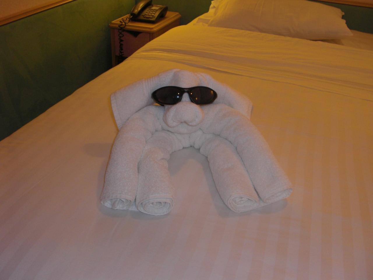 お部屋ではタオルアートの犬??がお出迎え。