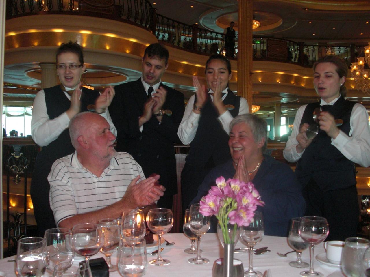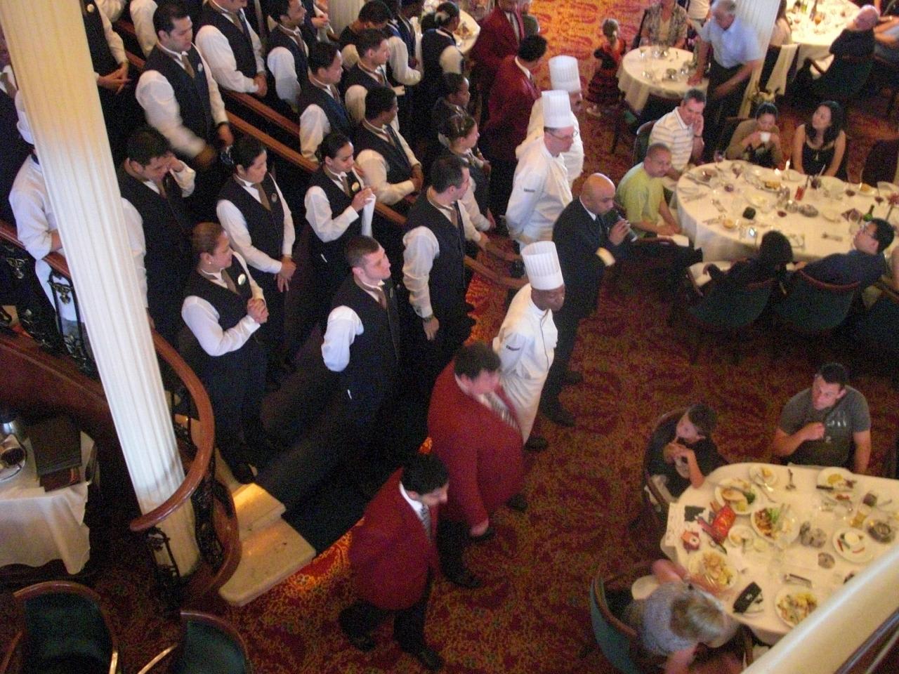 最後のディナーではレストランのウェイターやシェフが集まってナプキンをくるくるしながら歌っちゃいます。