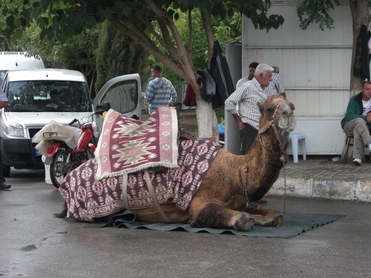 入り口ではラクダが観光客をお出迎え
