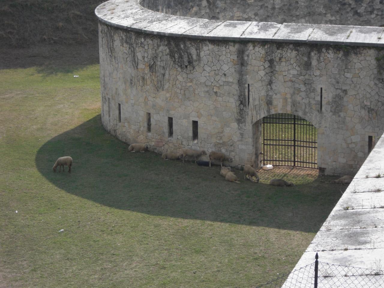 駅近くの広場?公園?には羊の群れがいました。