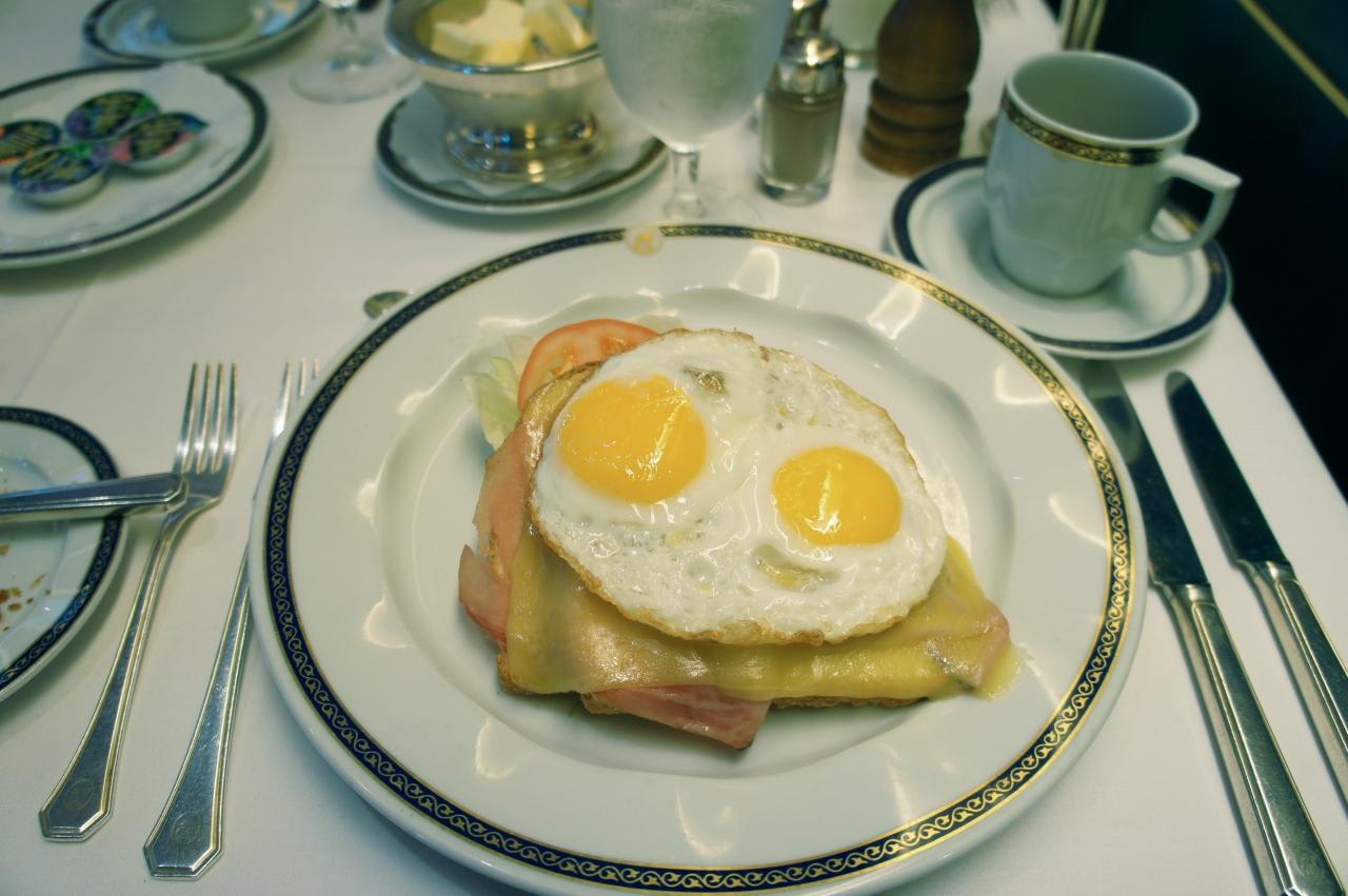 トーストの上にゴーダチーズとハムエッグが乗ってます。