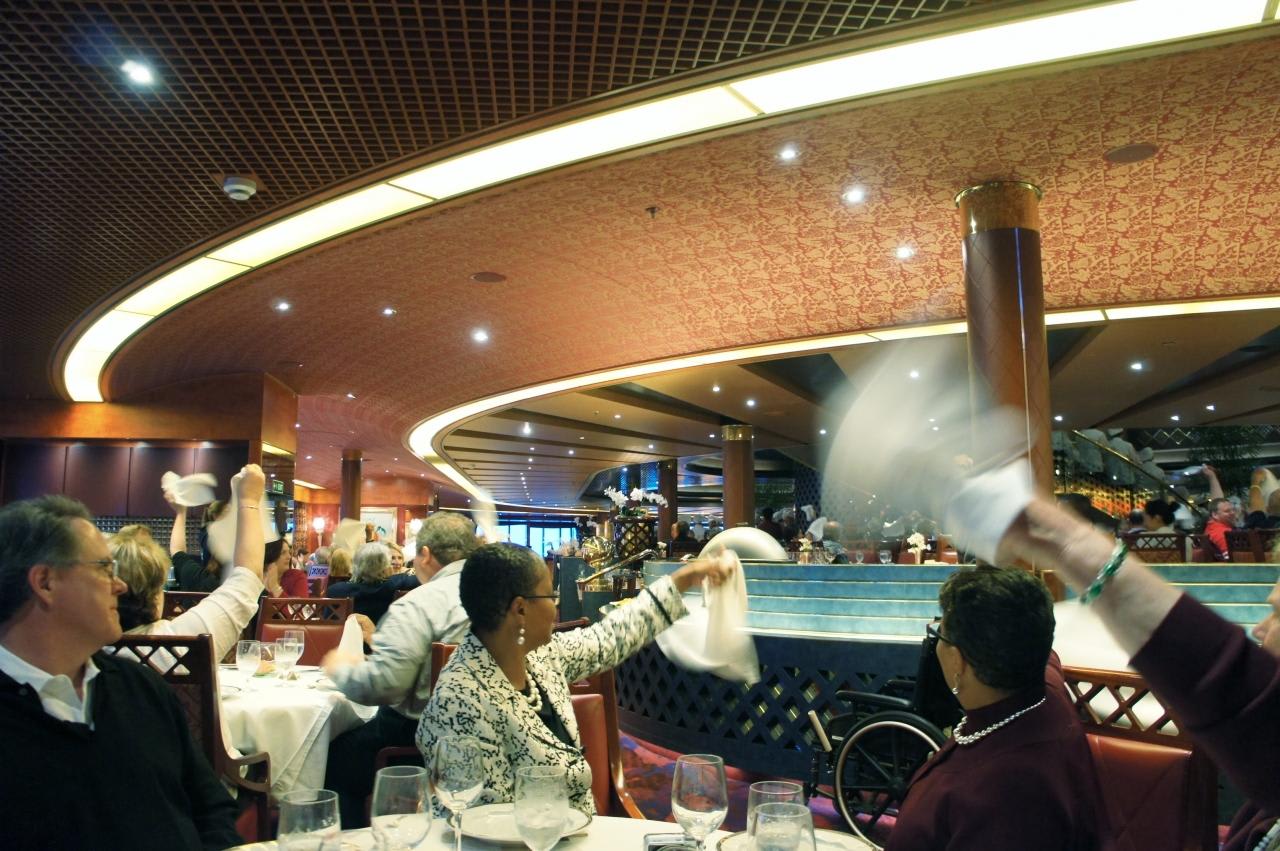 ナプキンを振り回してクルーのダンスを楽しみます