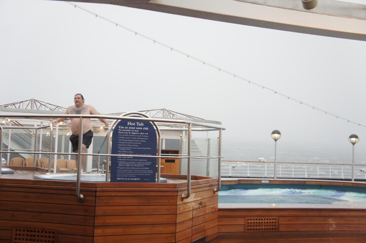 ジャグジーが波のプールのように風と揺れでザッパーンとなっているにも拘らず入ってる強者も居ましたが、結局危険なのでクローズしちゃいました。