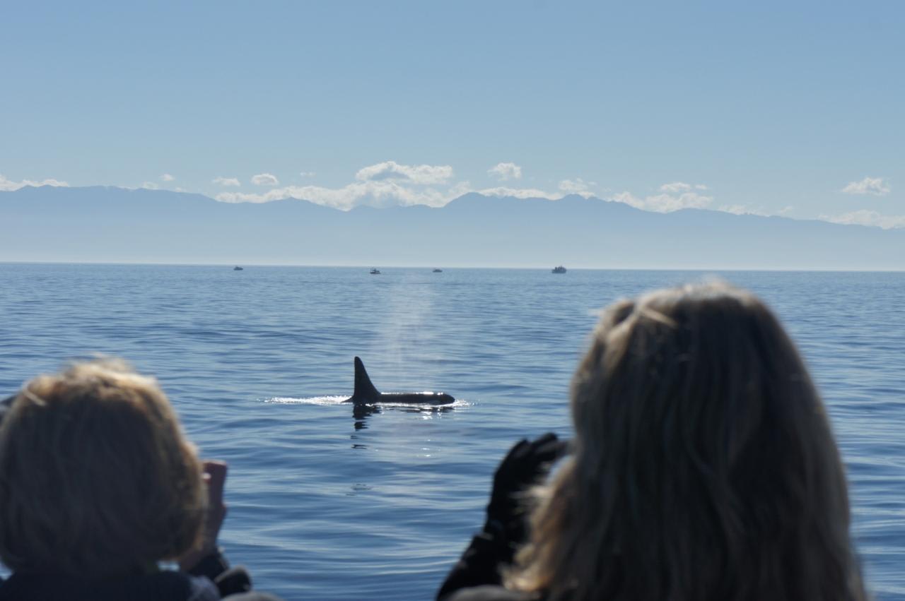 シャチのシオを吹く音が凄い!!たーくさんいます。