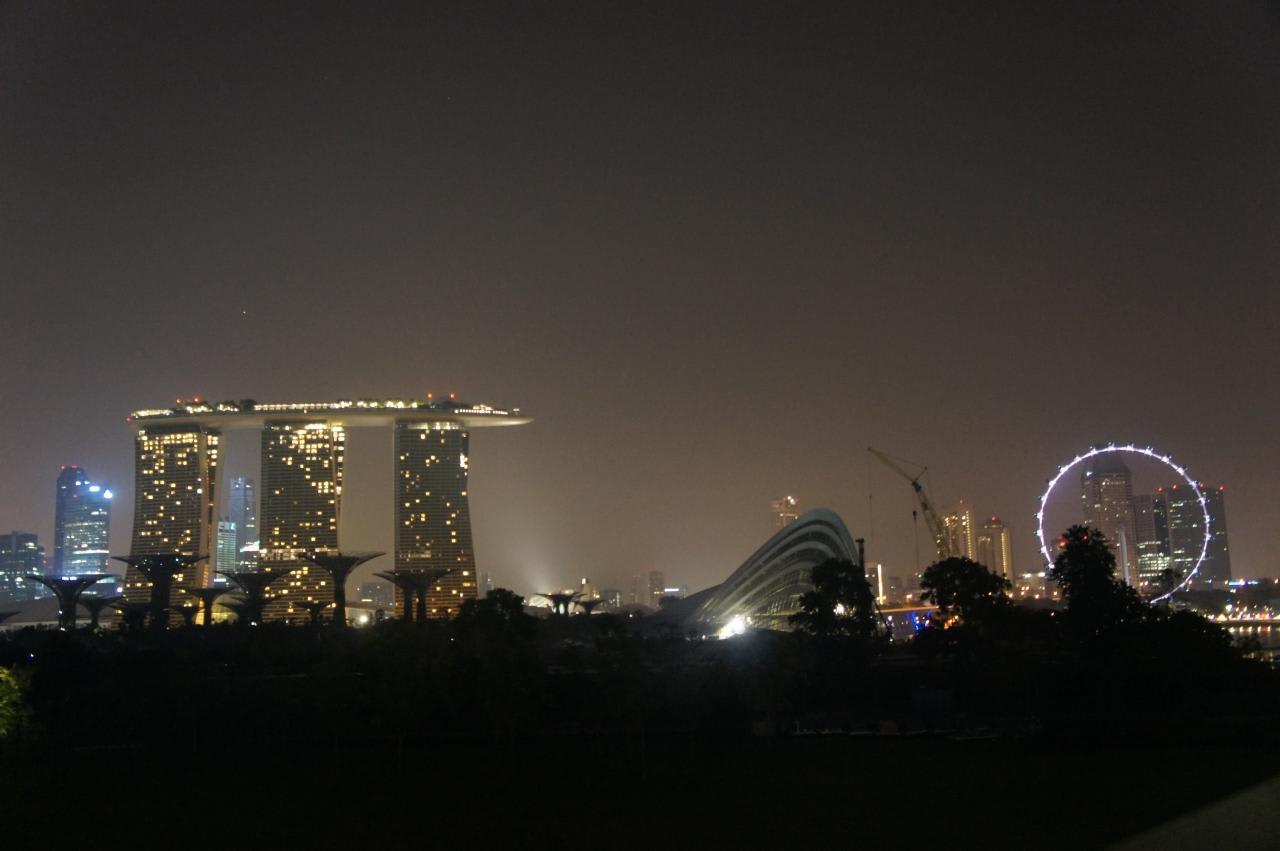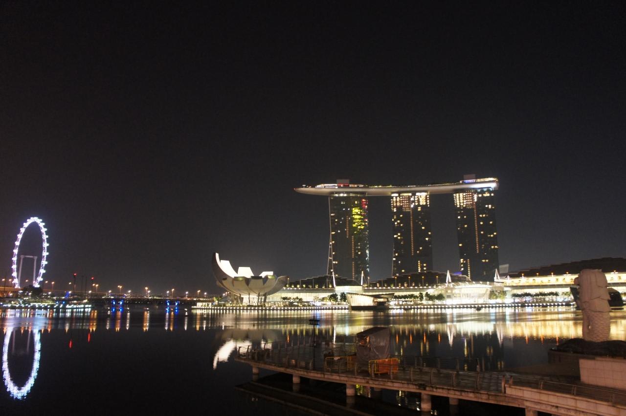 マーライオンはイースターの祭典に合わせてイベントがあるとかで閉鎖して清掃中でライトアップもしてなきゃ水も吐いてない上に公園すら入れない状態だったけど、マリーナベイサンズの夜景はとっても綺麗でした。