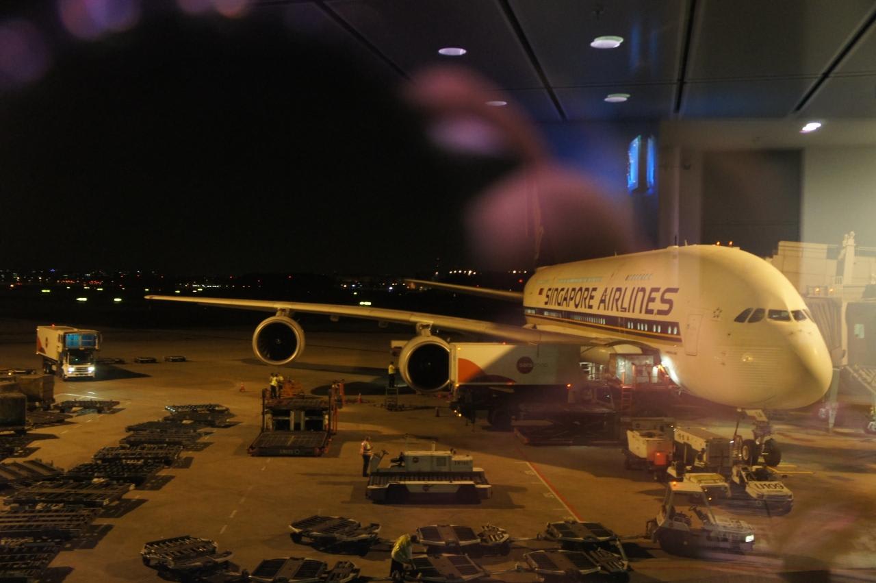 シンガポール航空11便、総2階建てのA380に2回目の搭乗です。