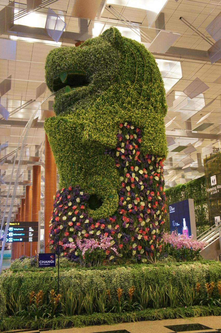 マーライオンには会えなかったけど、空港で植物マーライオンに会えました。