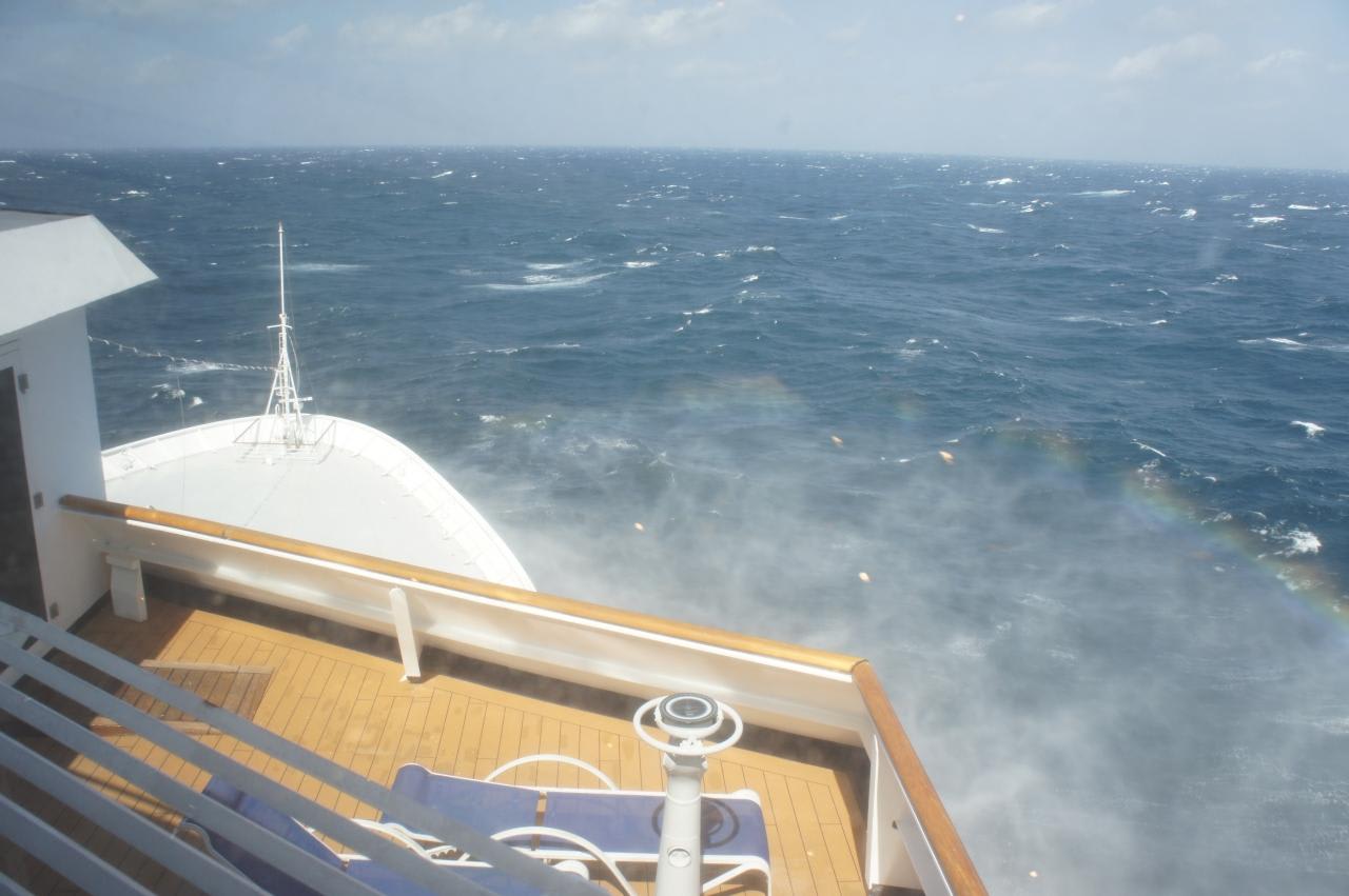 私は船首のバーからの物凄い波の眺めに感動してカメラ片手に興奮!!!