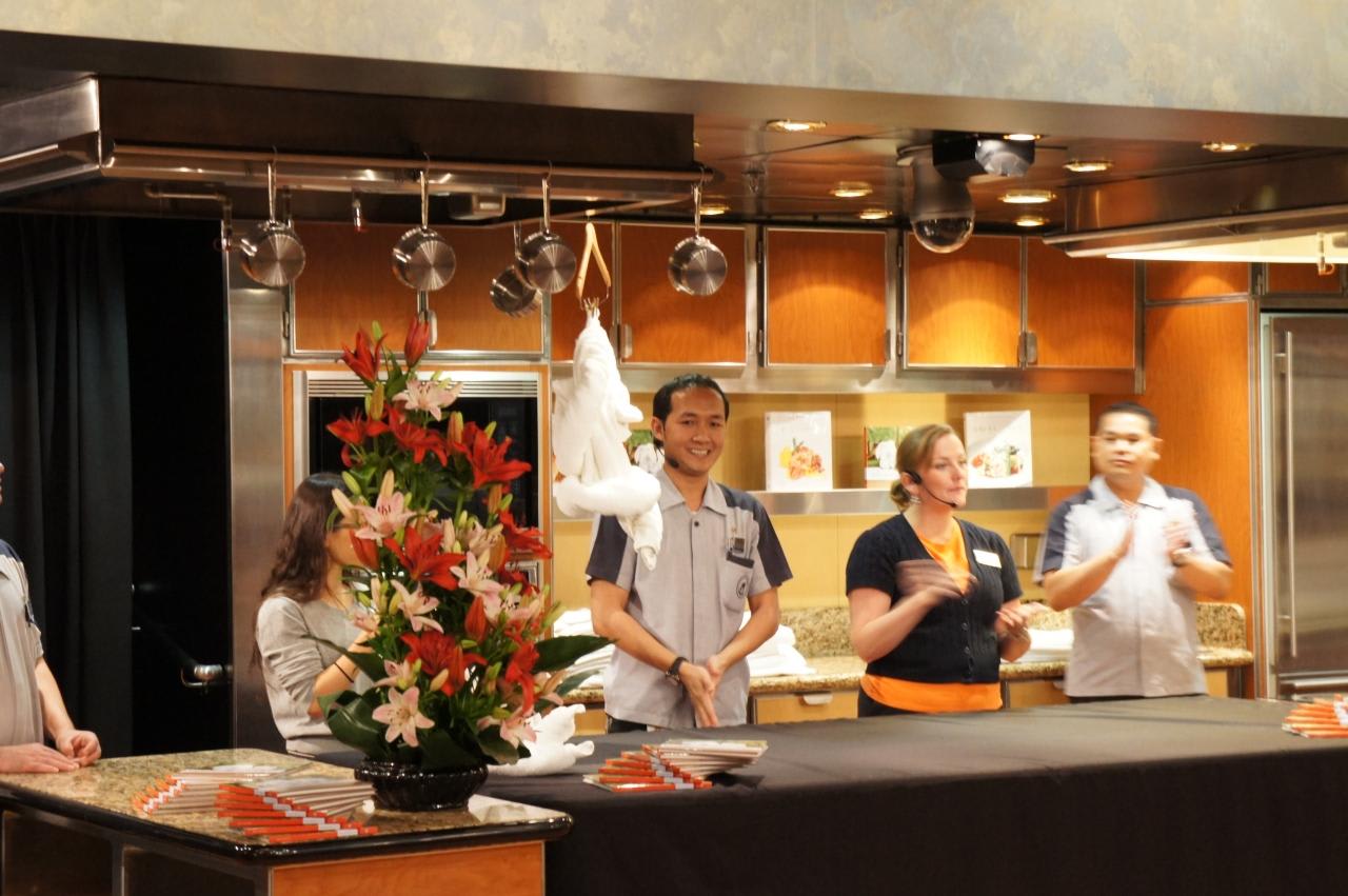 タオルアートの教室では、私達の部屋のハウスキーピングクルーがステージに立ってました。
