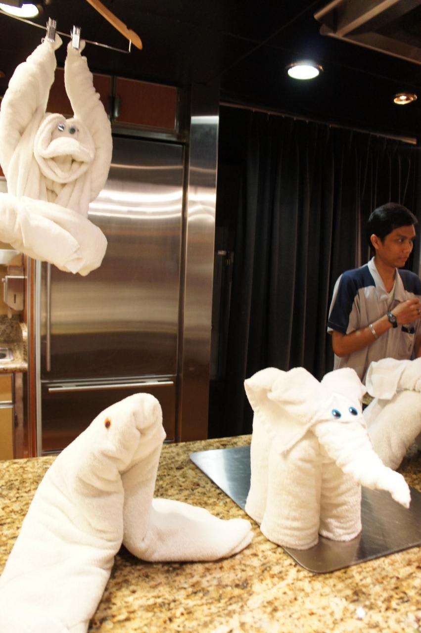 初日にタオルアートでサルをリクエストしたらすぐに折ってくれまして。。。