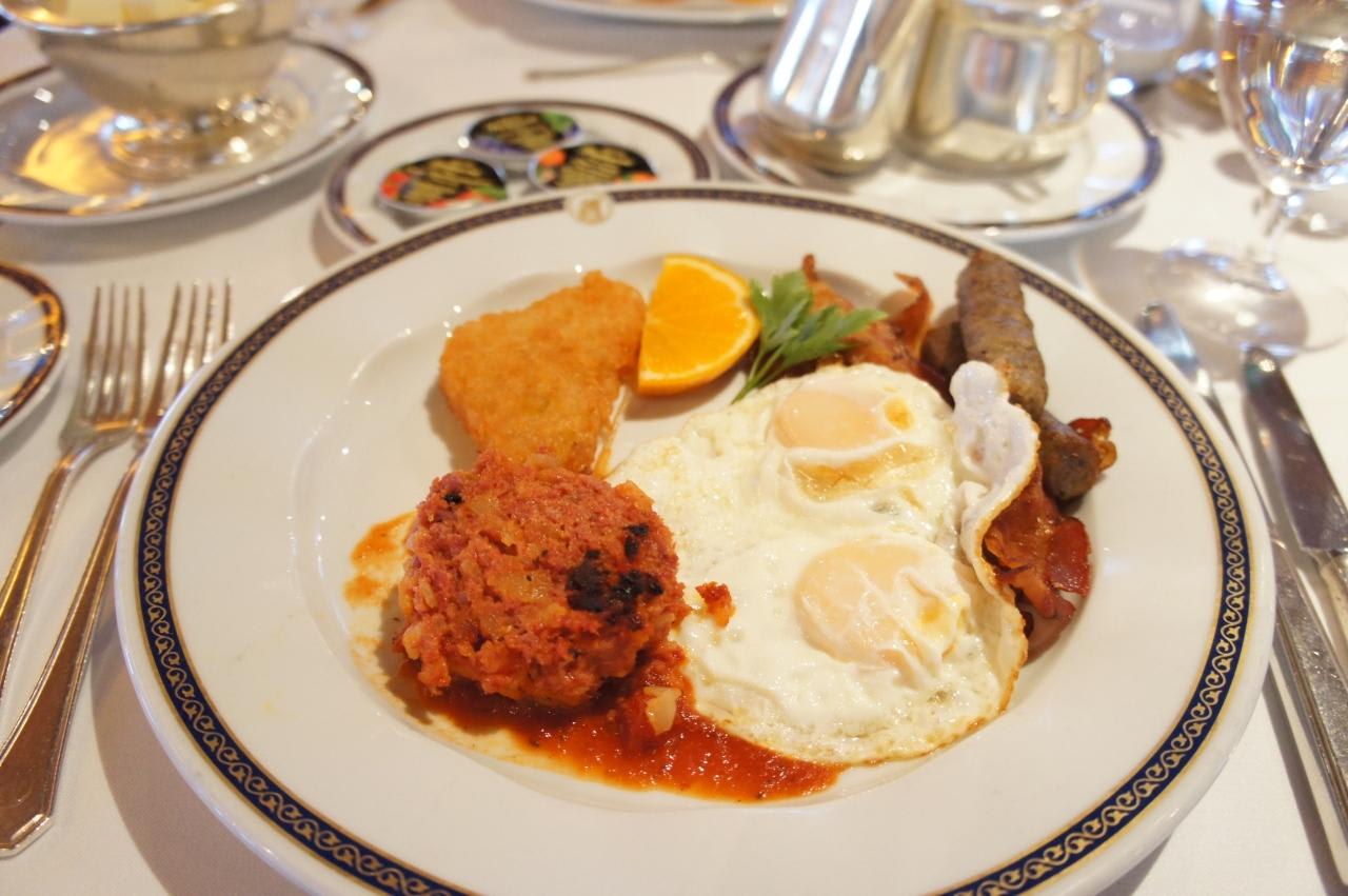 この日はコンビーフと卵料理(目玉焼き:両面をチョイス)、ポークソーセージとスモークベーコンを追加してアメリカンにしてみました。