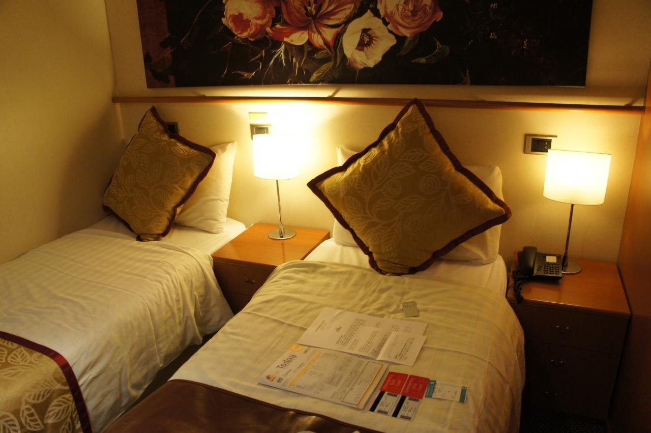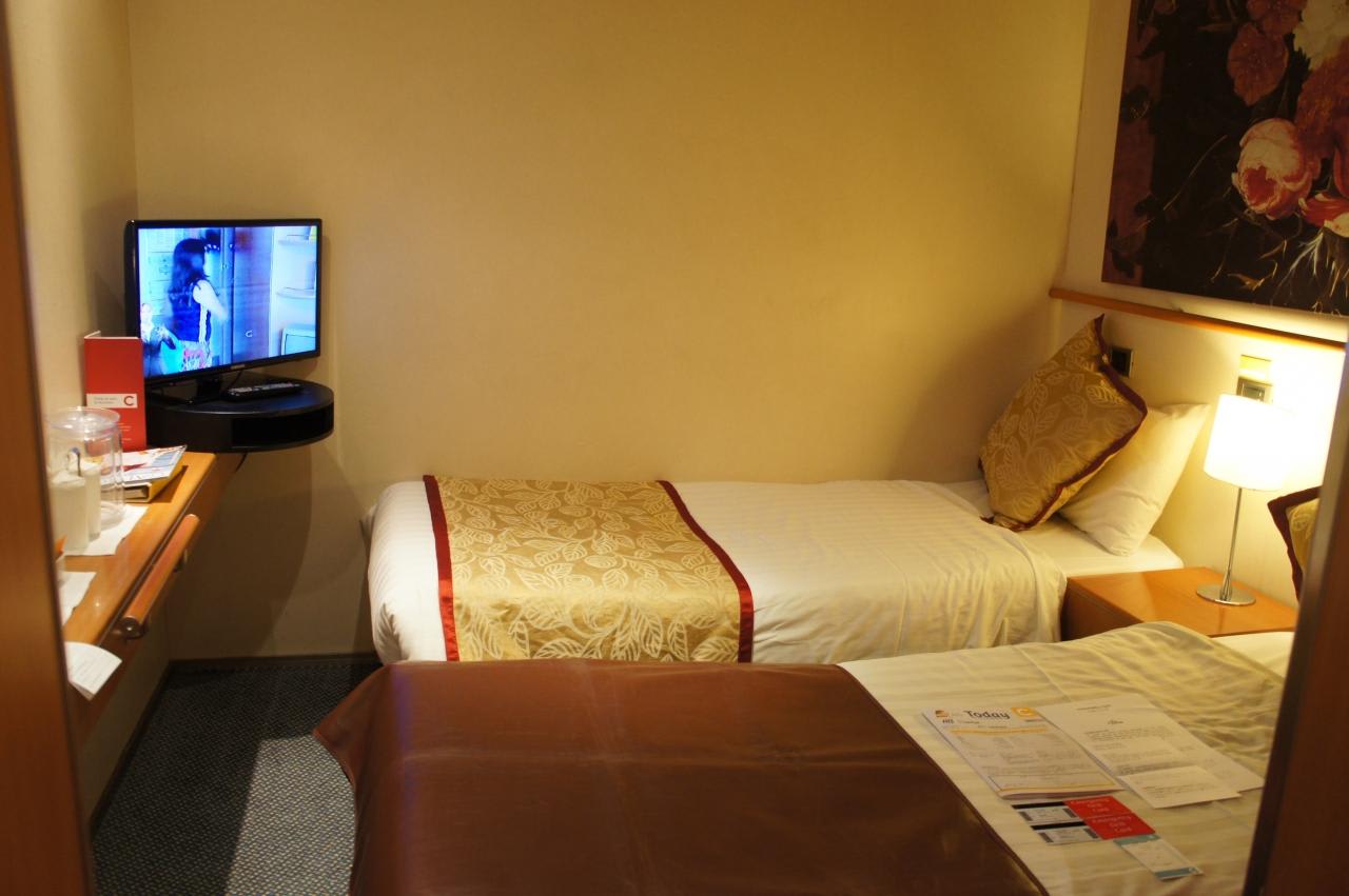船室内は天井が低い為、ホテルの狭い部屋と比べても圧迫感がありますが、これは欧米人にはかなりキツイサイズでは?と思ってしまいます。