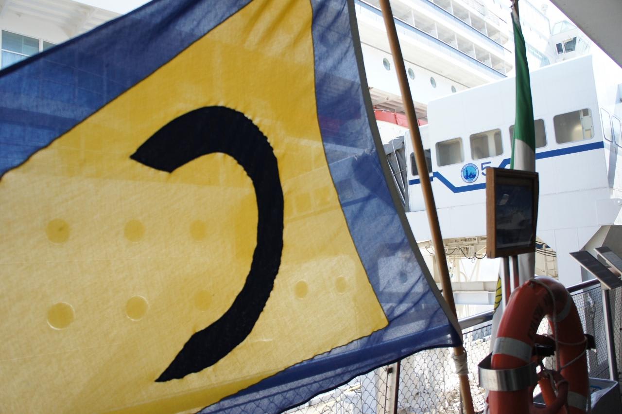 船からも乗船許可が出てないので、とにかく待ってて、といわれてしまいました。
