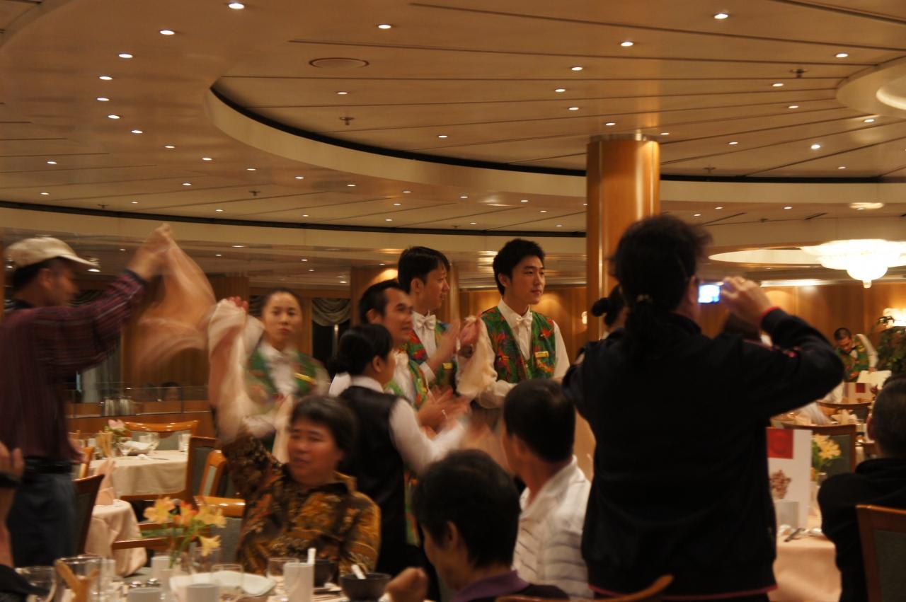 私も初日にビュッフェで中国人クルーに叱られている中国人の若い女の子が涙していたのを見て「頑張って!」と思っていました。