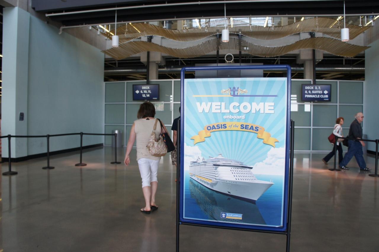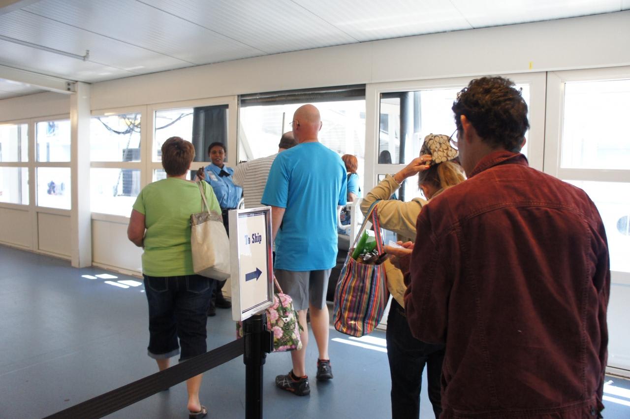 スーツケースをポーターに預け(チップ要)乗船手続きをする為ターミナルへ。