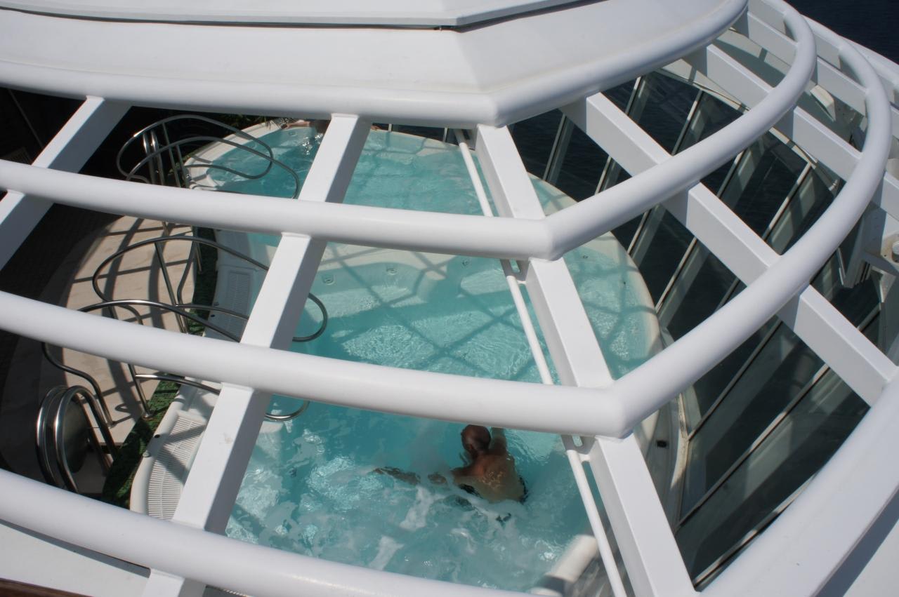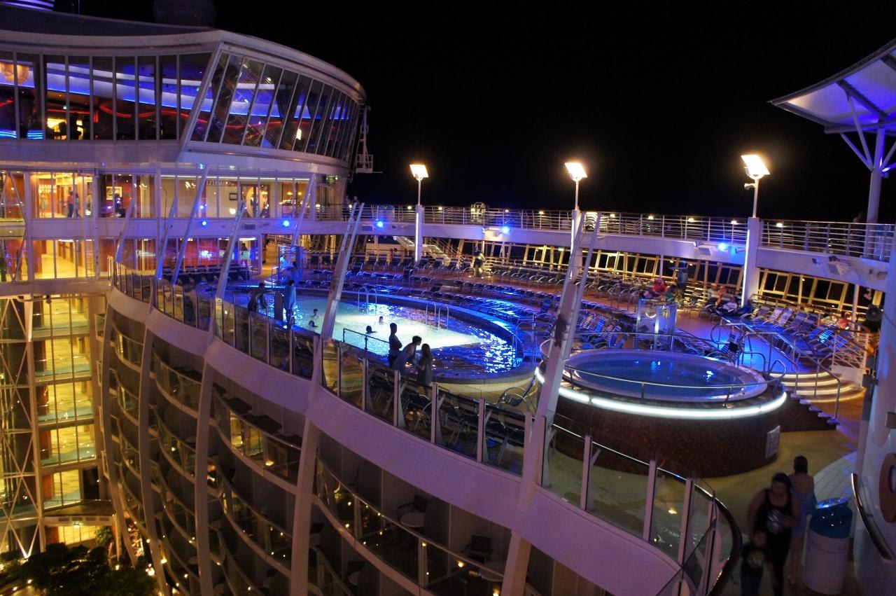 オアシスクラスは中央が抜けているのでプールは両側に別れています。