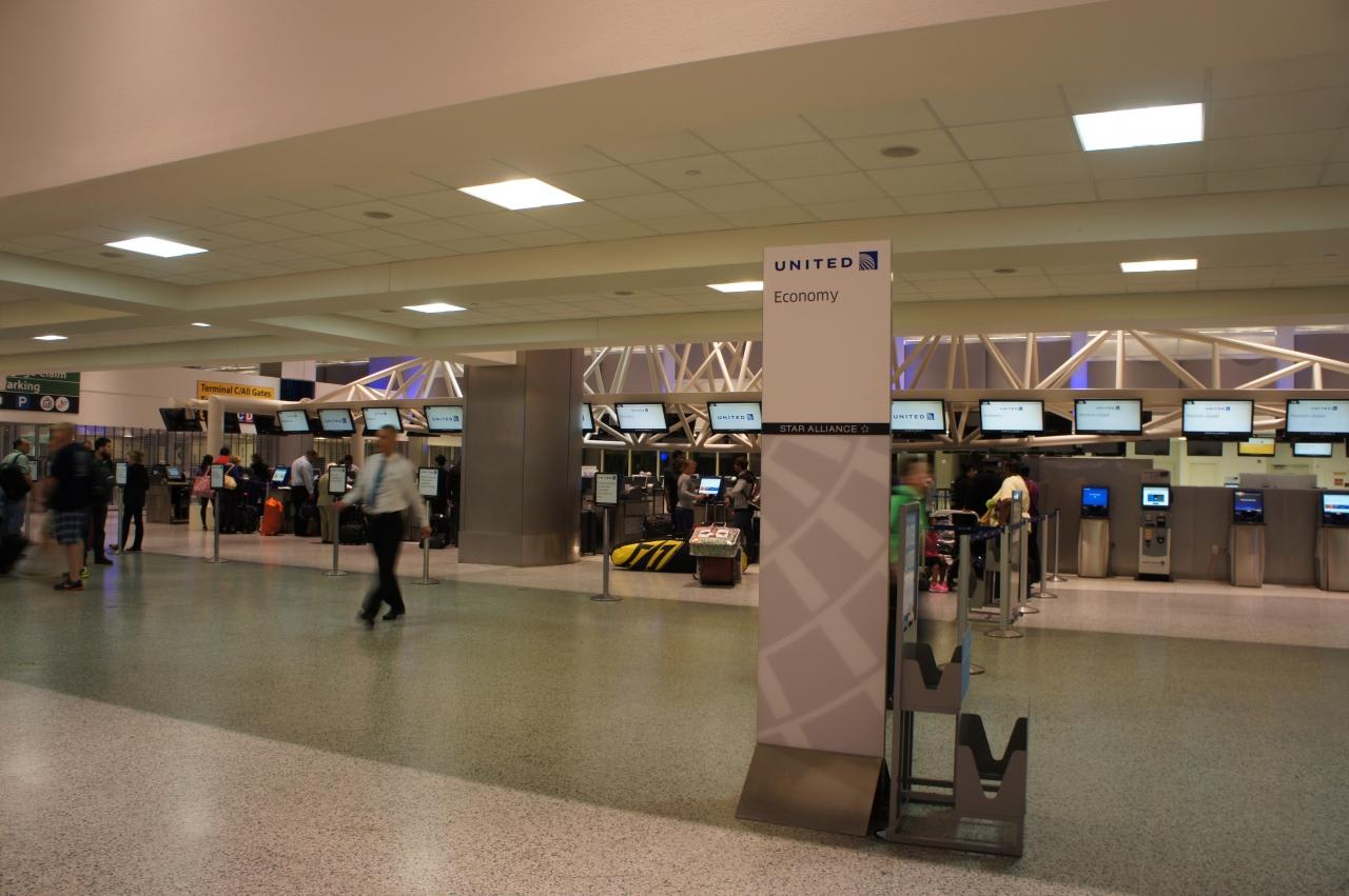 UAのターミナルEまではかなりの距離歩きます。