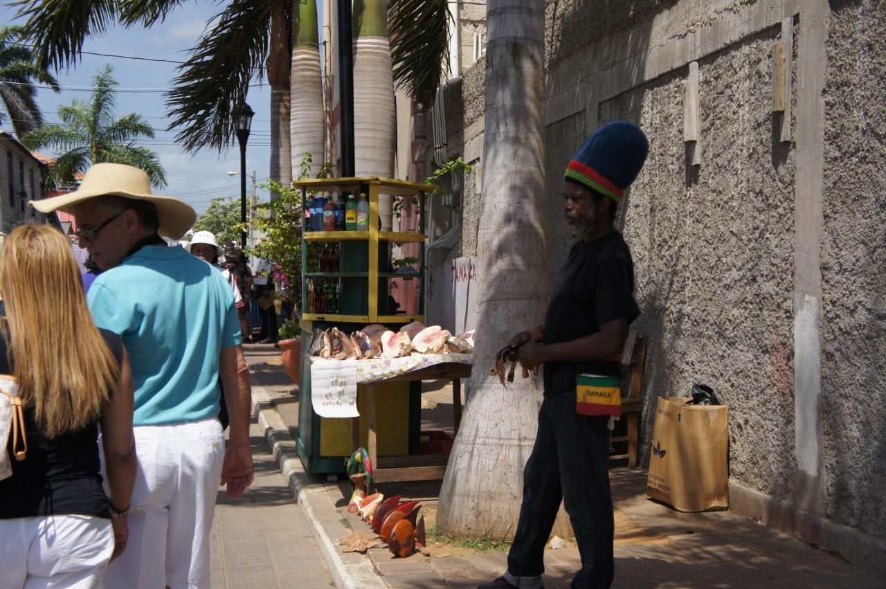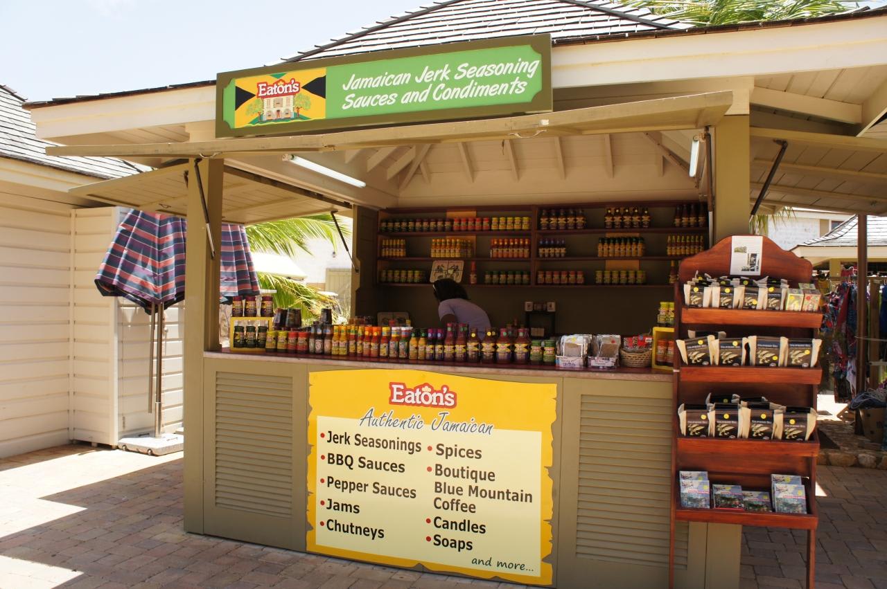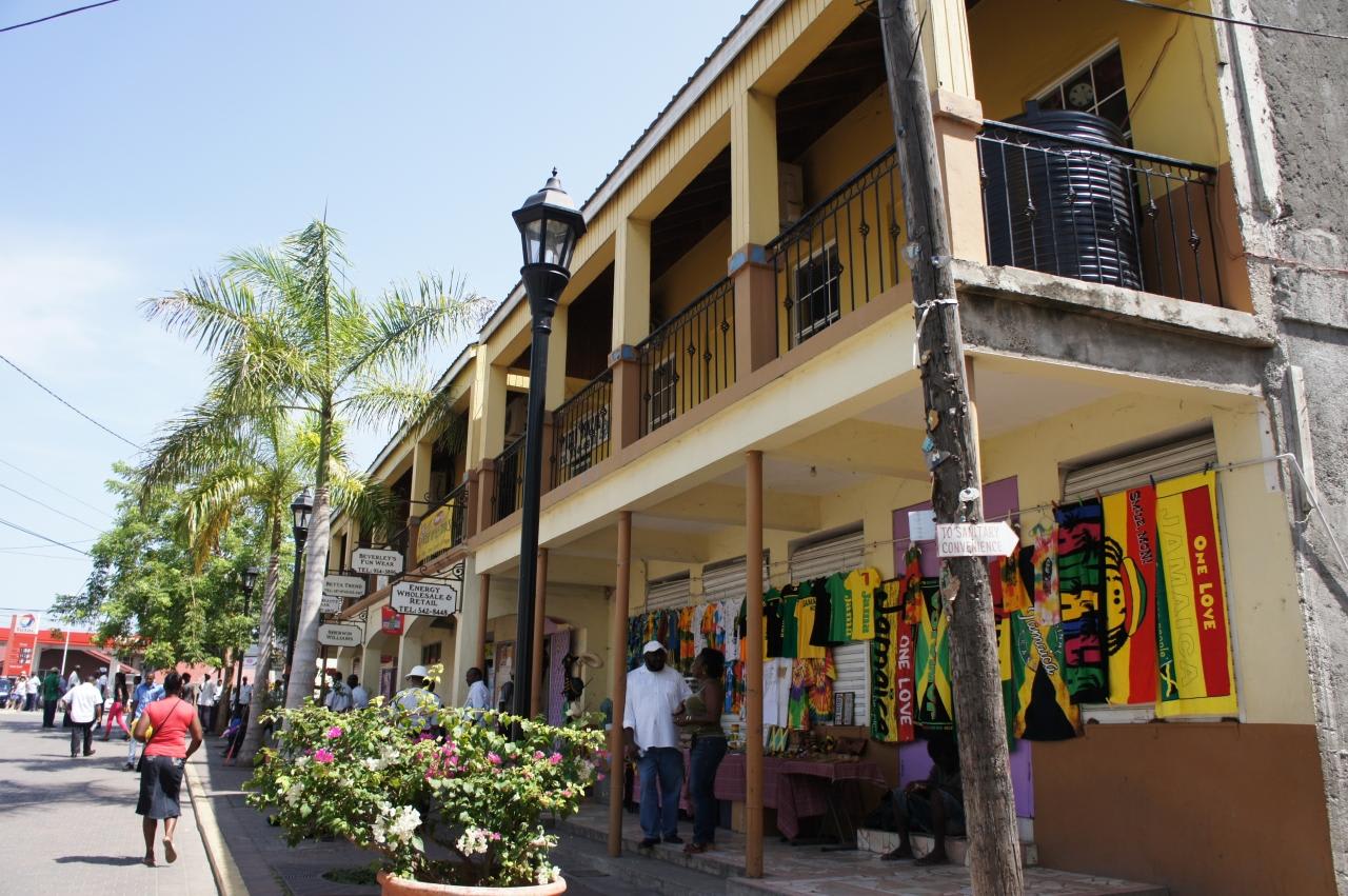 港町ではジャマイカ名物のブルーマウンテンコーヒーやジャークチキンの素やラム酒等も揃うしジャマイカらしい土産物も揃っています。