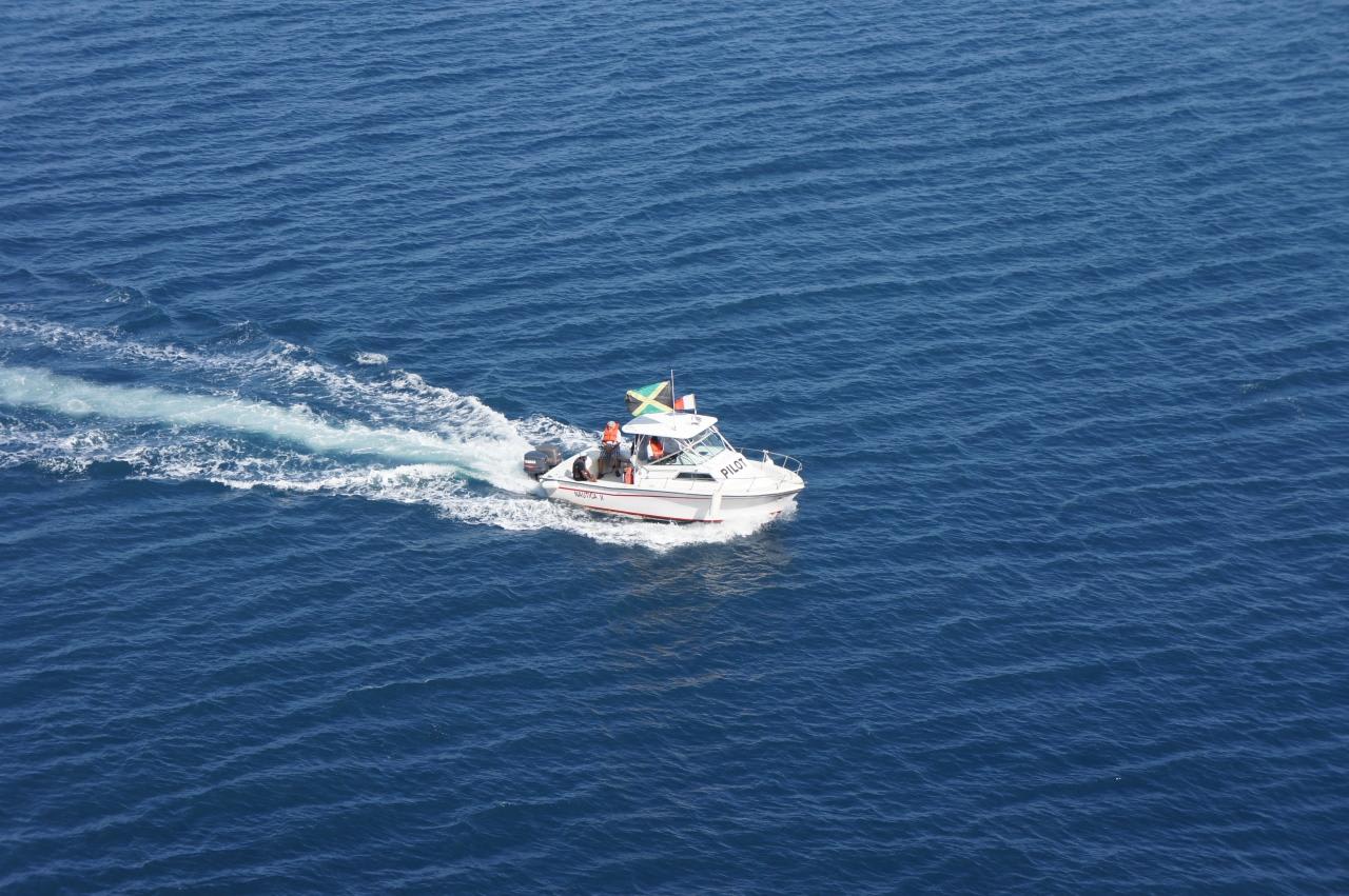 パイロット(水先案内人)が乗ったボートが近づいてきました。