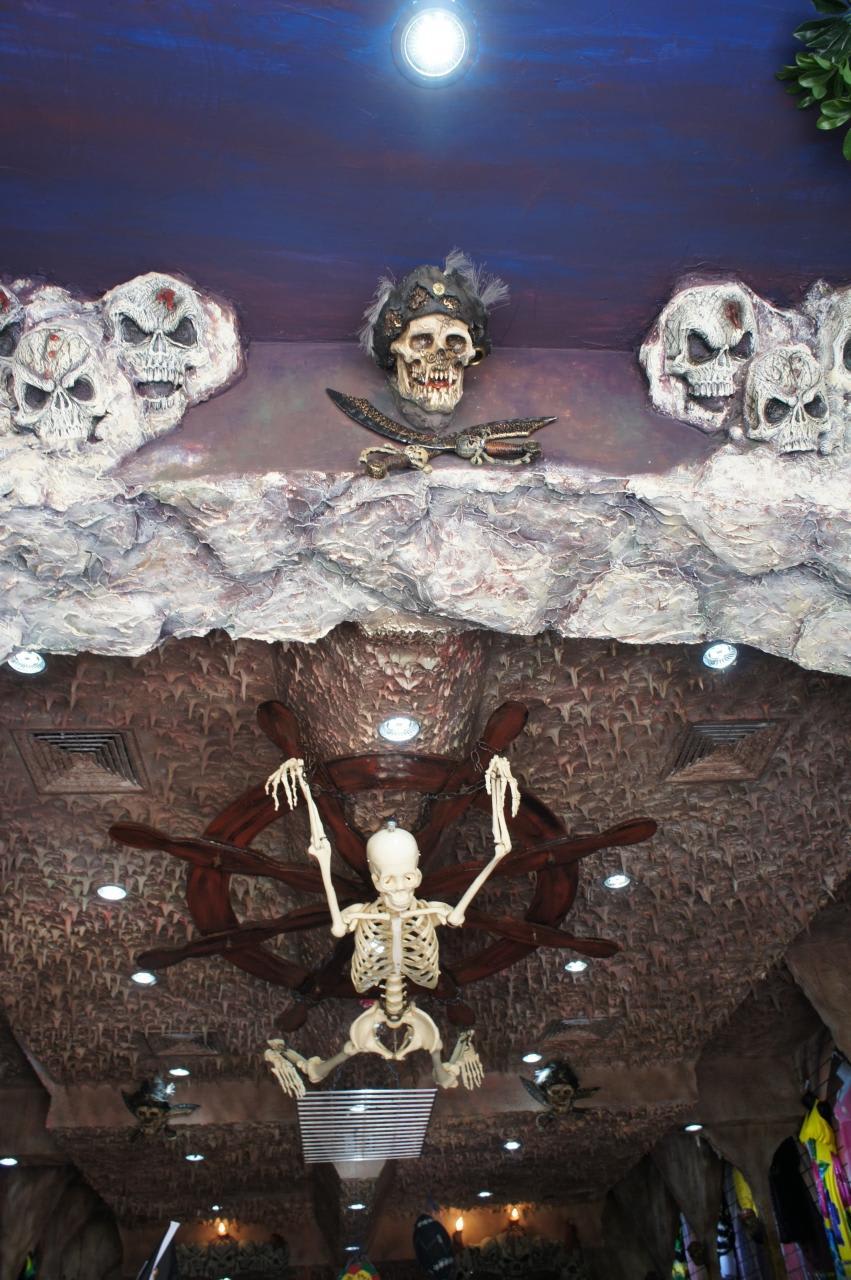 ディスプレイがガイコツ尽くしのお土産物屋さん。