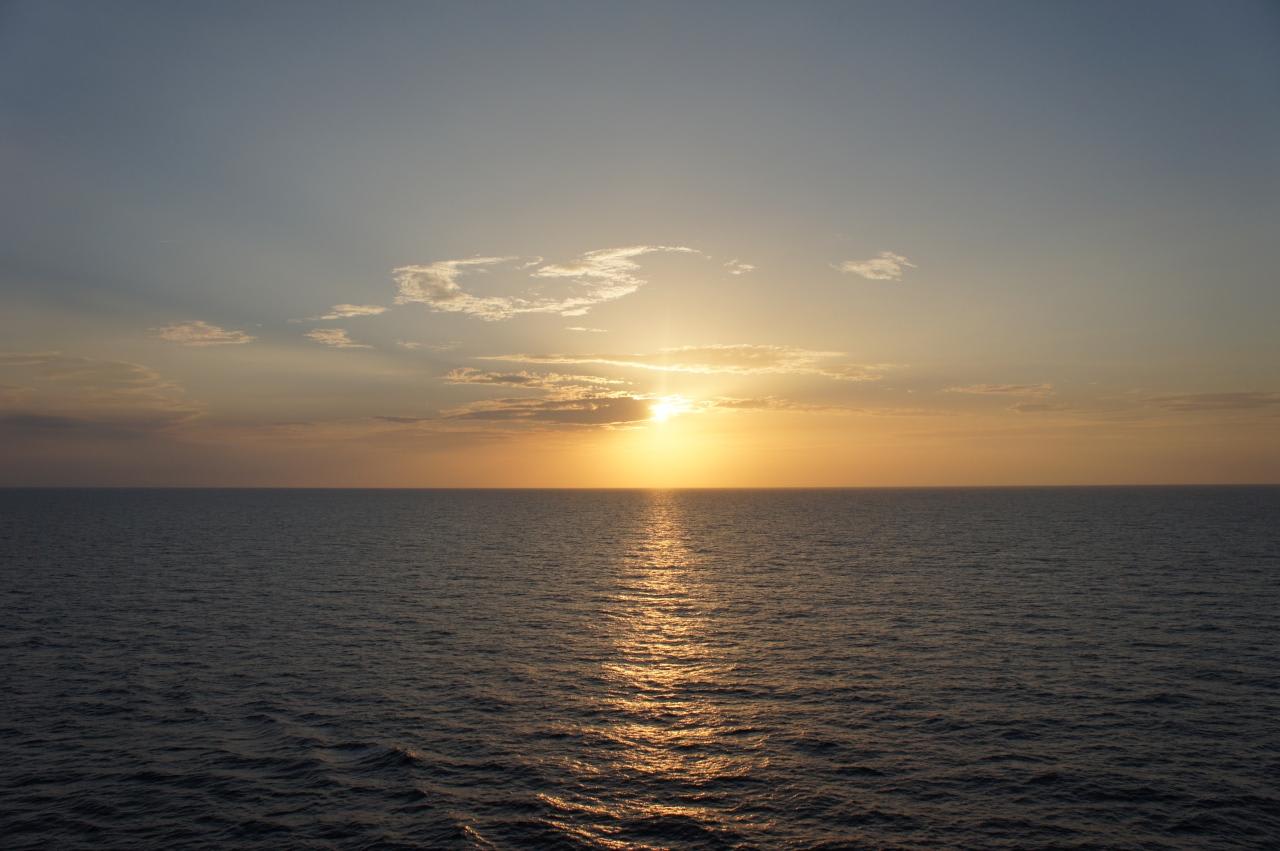 船からの最後の夕日。