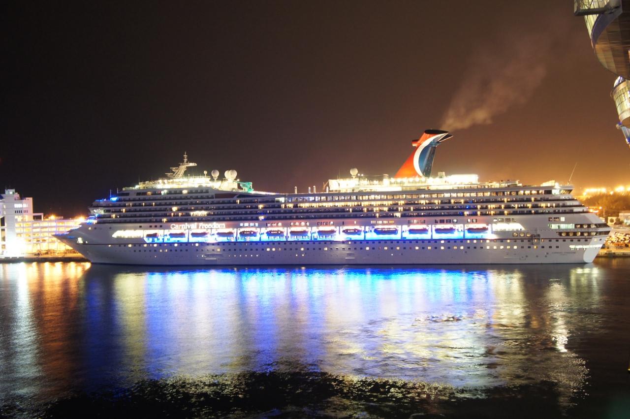 カーニバルフリーダムのライトアップが幻想的です。