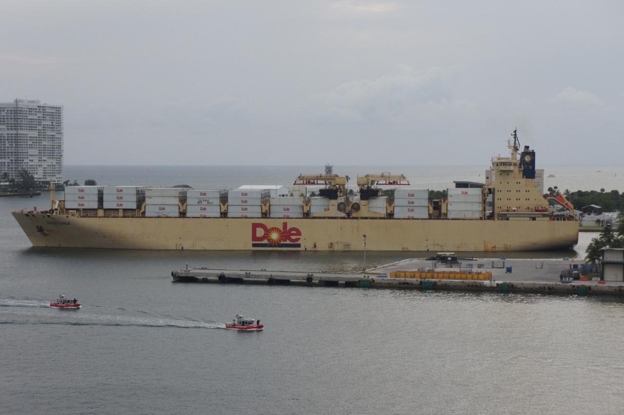 外を見るとさすがフロリダ、Doleのコンテナ船(DOLE CHILE)がいました。