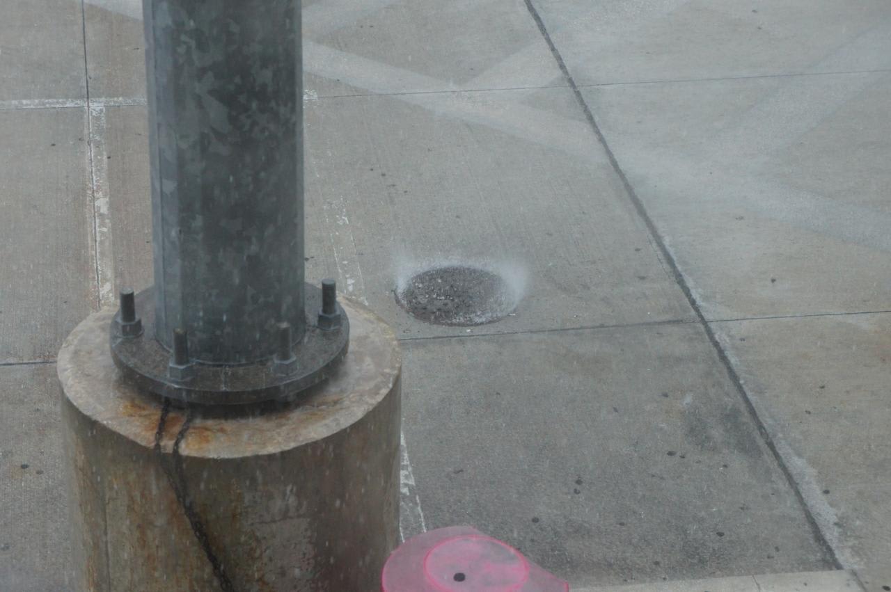 マンホールから水が噴出してます。
