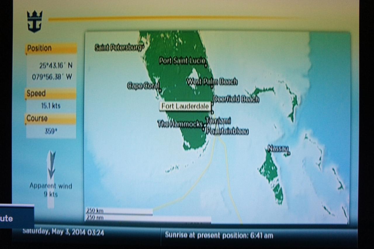 へんな時間に目が覚めて、テレビを確認するとフォートローダーデールはもうすぐそこ。