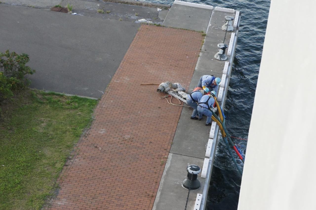 日本の港ってちゃんと作業着でヘルメットで凄いなぁ。