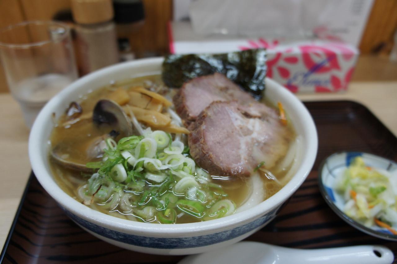 母が注文したあさりラーメン、あっさり、細麺。