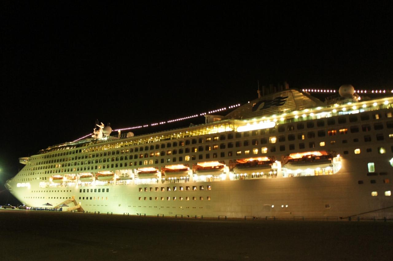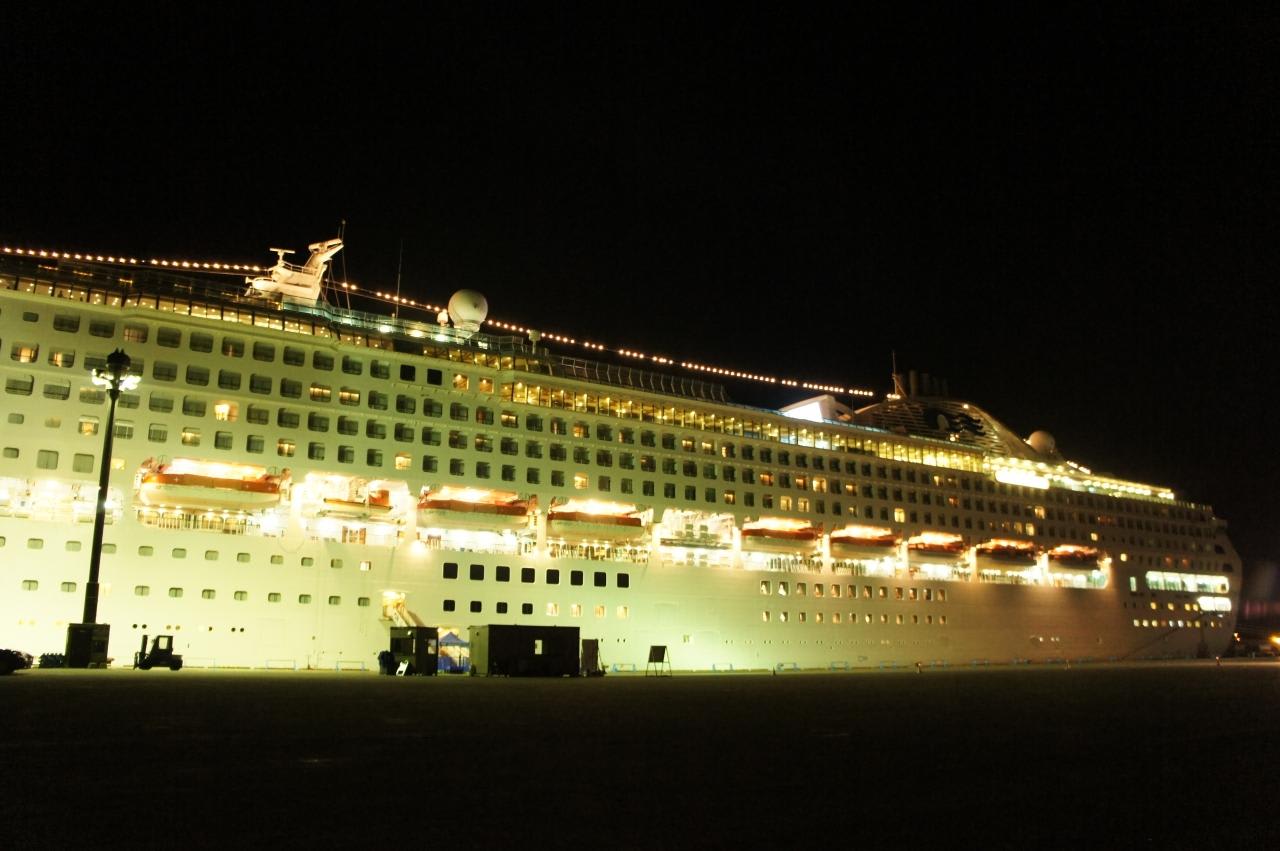 この日は終日クルーズの予定が夕方網走入港とスケジュール変更があり、夜の客船を見るチャンスはあまりないので食後に下船し、ライトアップされたサン・プリンセスを撮影し船に戻りました。