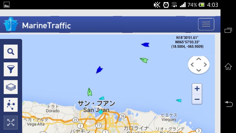 乗船する船がどこにいるか気になってMarine Trafficでチェック。