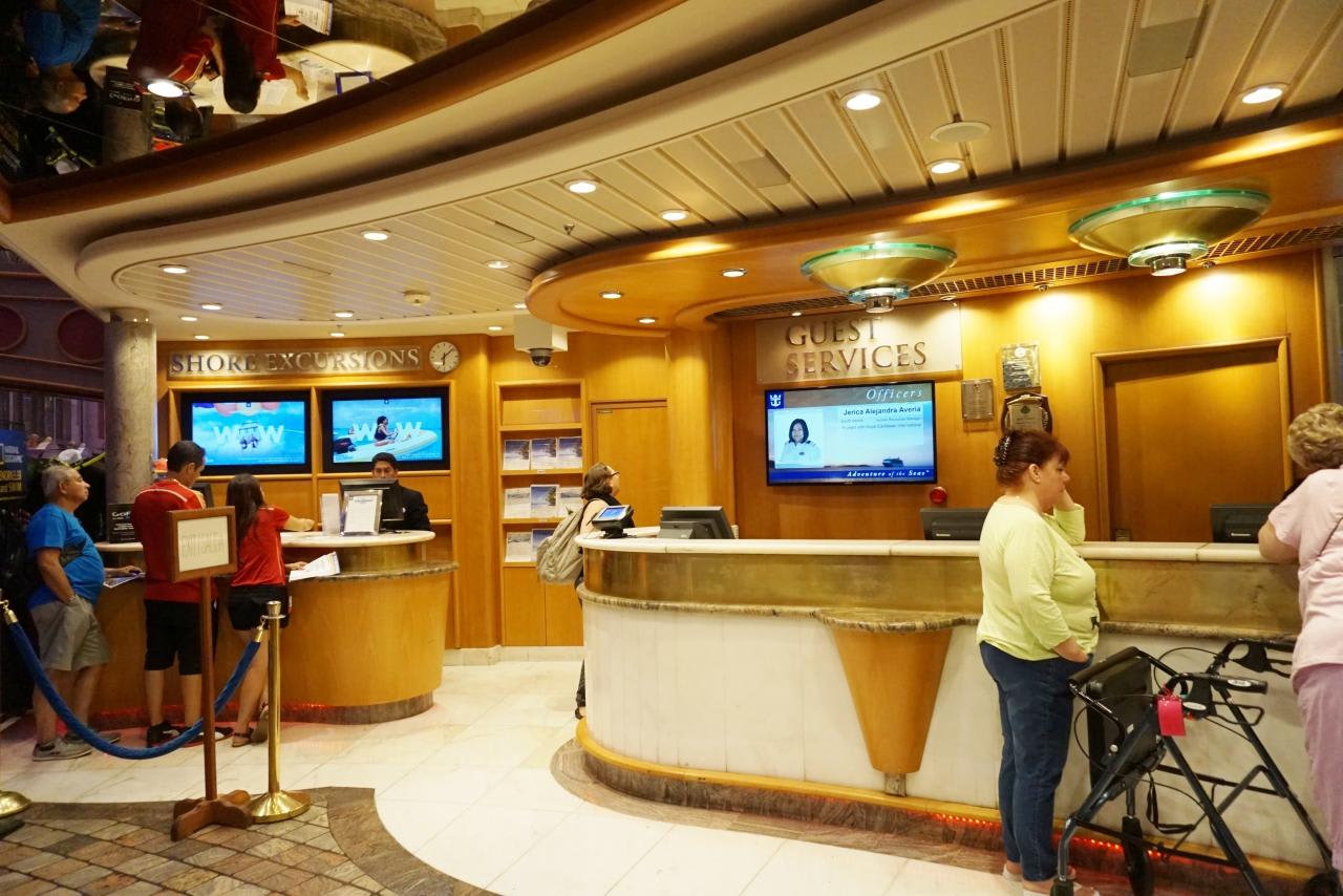 ゲストサービスデスクはまだ空いていたけど、エクスカーションデスクはちょっと並んでいました。