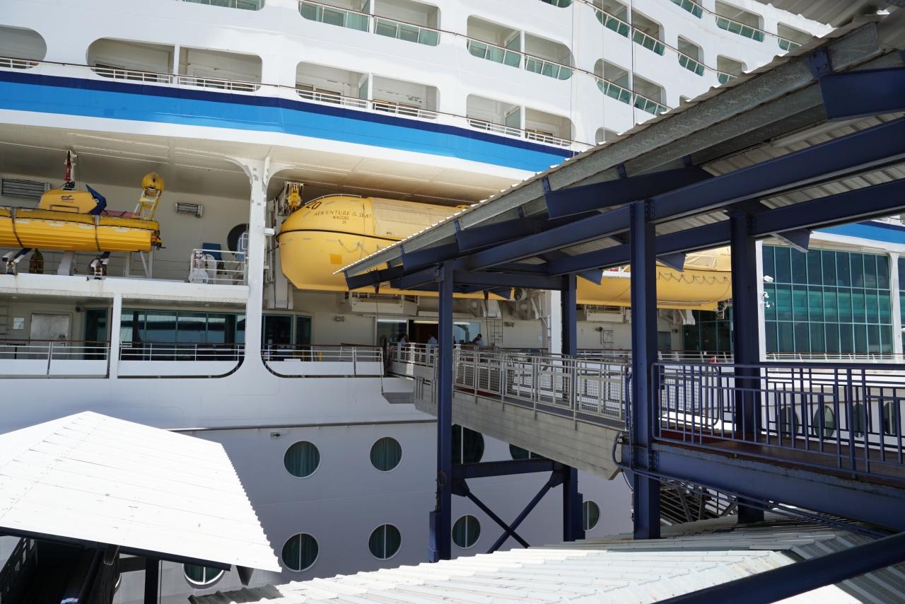 右側がこれから乗船するロイヤルカリビアンのアドベンチャーオブザシーズ。