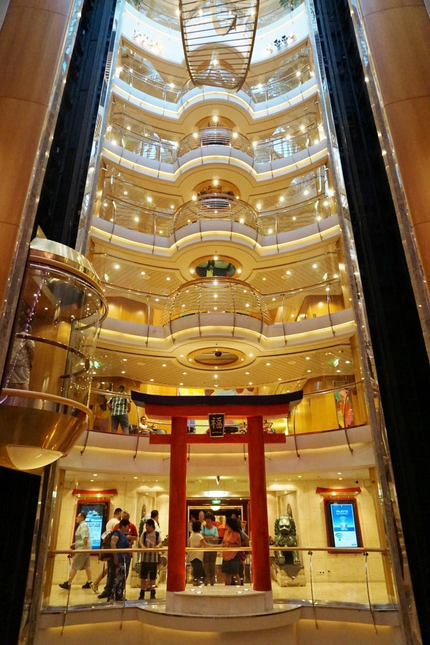 最初は驚いた船の吹き抜けエレベーター。