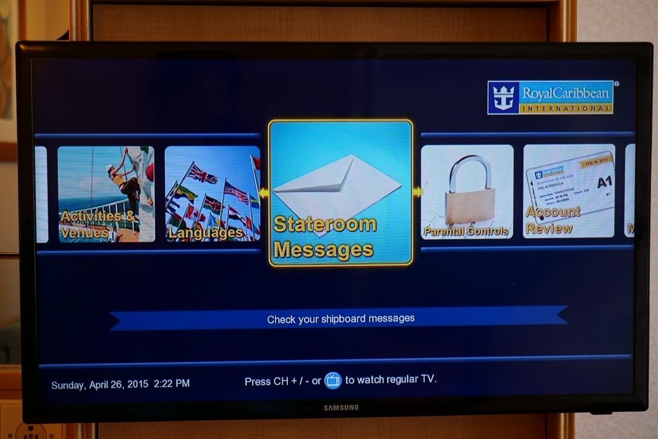 アドベンチャーオブザシーズにもテレビでアカウントをチェックするサービスが導入されていました。