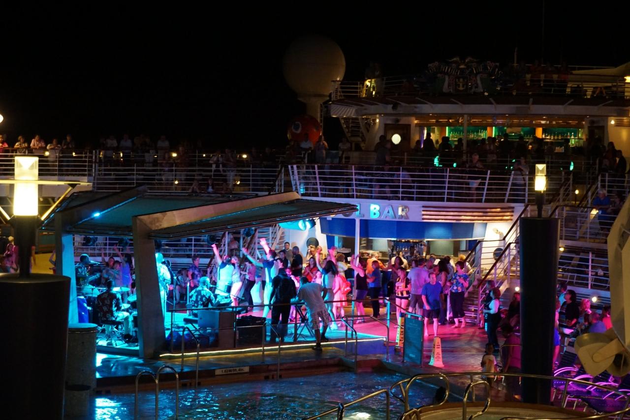 ダンスミュージックで盛り上がるプールサイド。