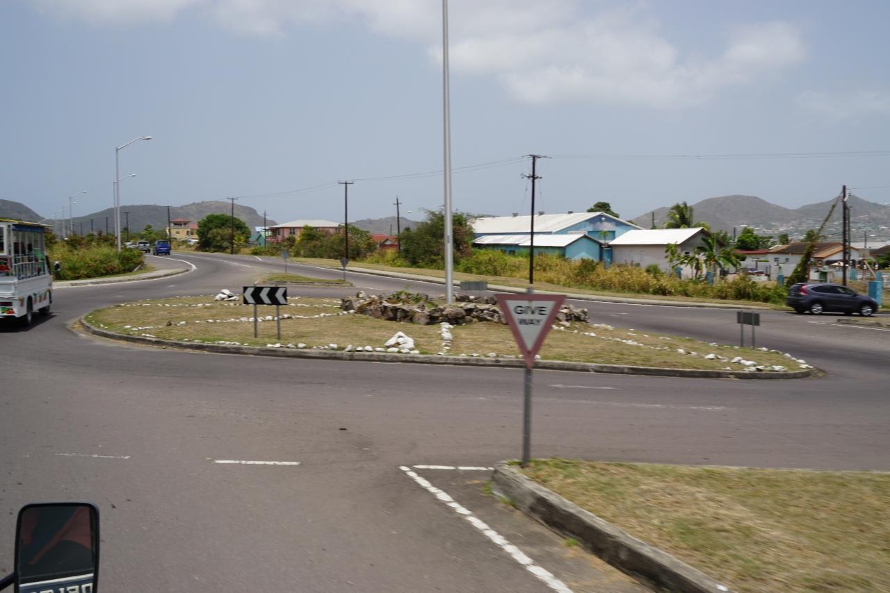 セントキッツネイビスはラウンドアバウトだらけでした。